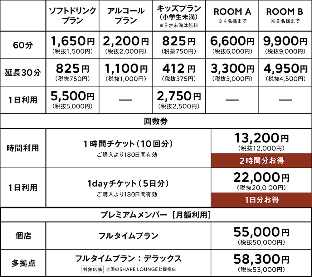 料金:SHARE LOUNGEの利用料金に準じます。