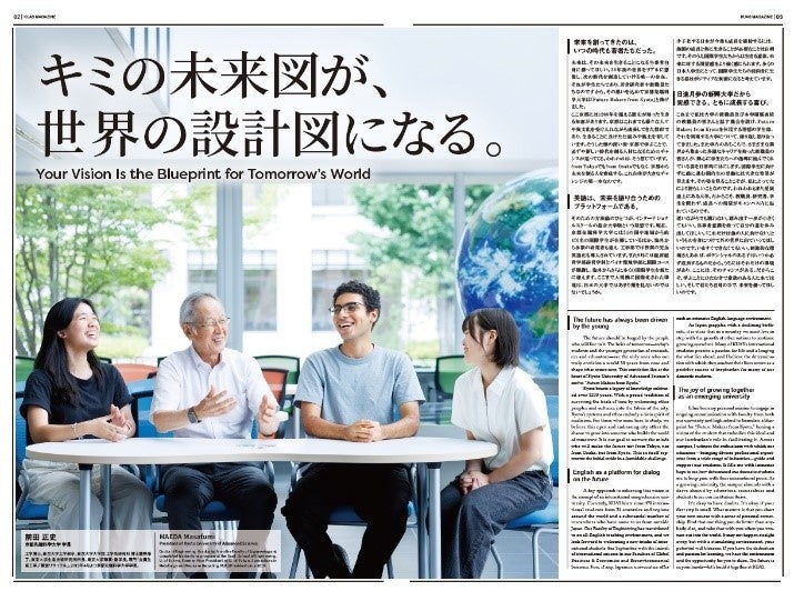 本誌は、本学が掲げるタグライン「Future makers from Kyoto」に基づき、未来を創造する学生や教職員の研究・活動に焦点を当て、大学の活発な取り組みを広く発信することを目的としています。