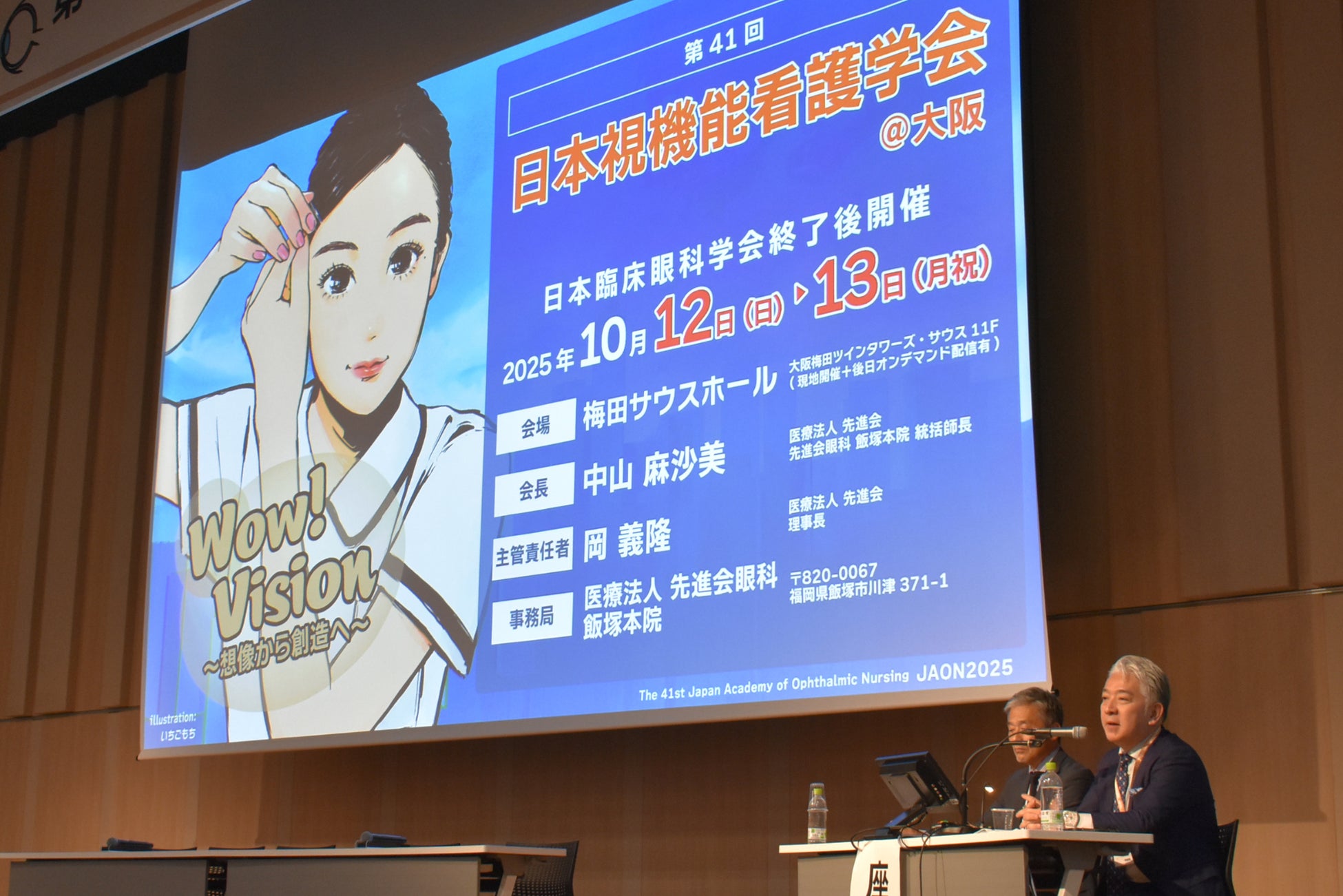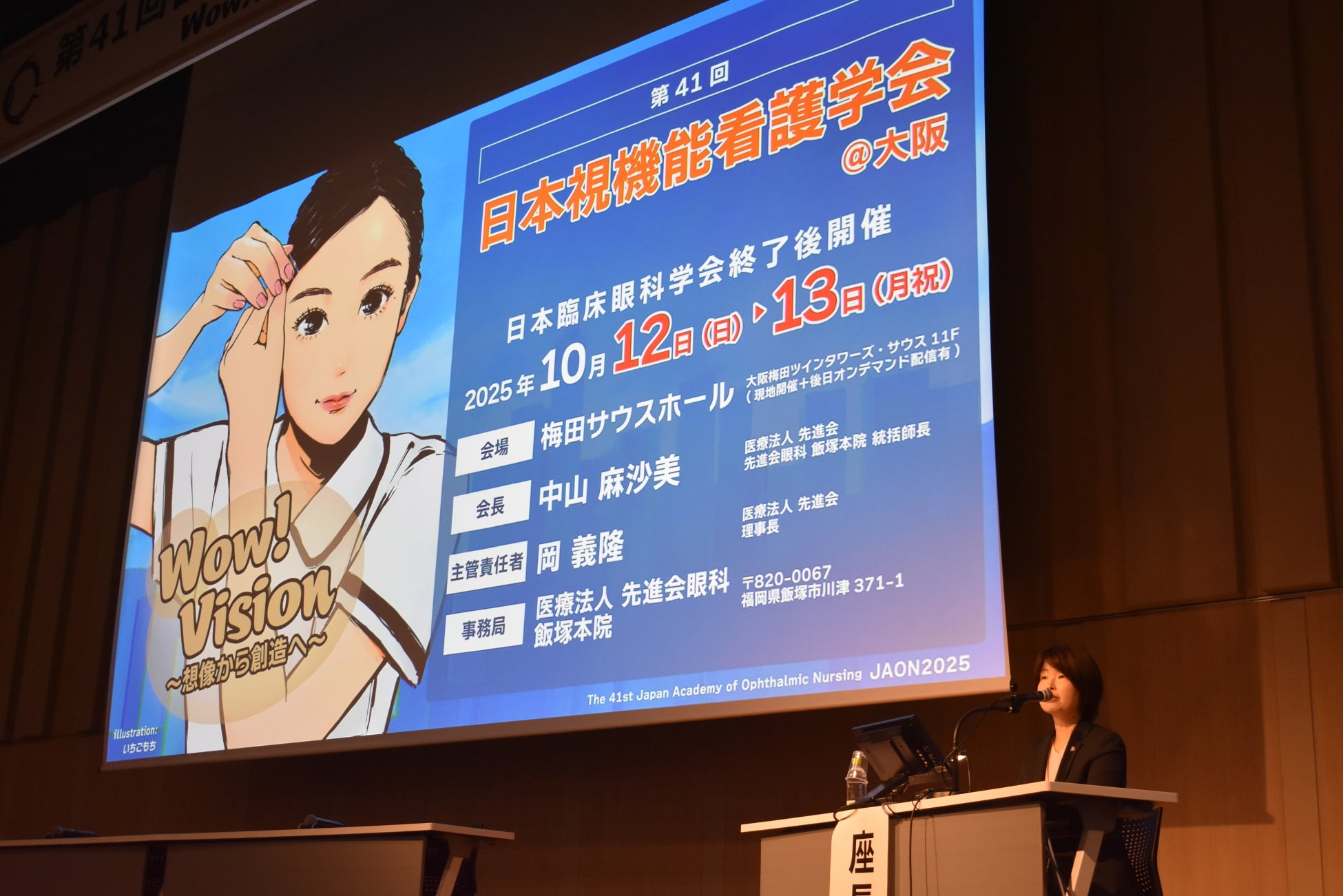 先端医療を全国へ届ける、日本唯一の全国ネットワーク・先進会眼科(本院:福岡県飯塚市、理事長:岡 義隆)は、2025年10月12日(日)・13日(月・祝)に大阪・梅田サウスホールにて開催された「第41回日本視機能看護学会学術総会」にて主管として学会運営を務めました。