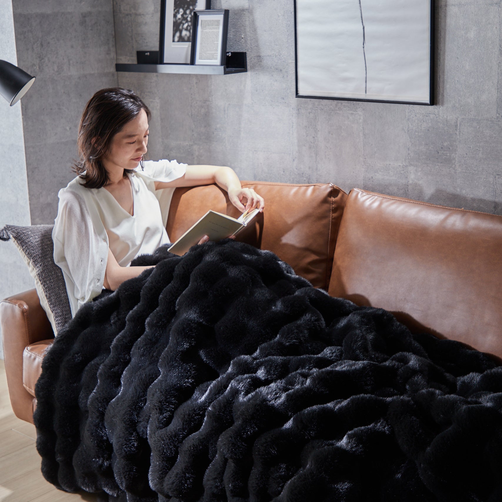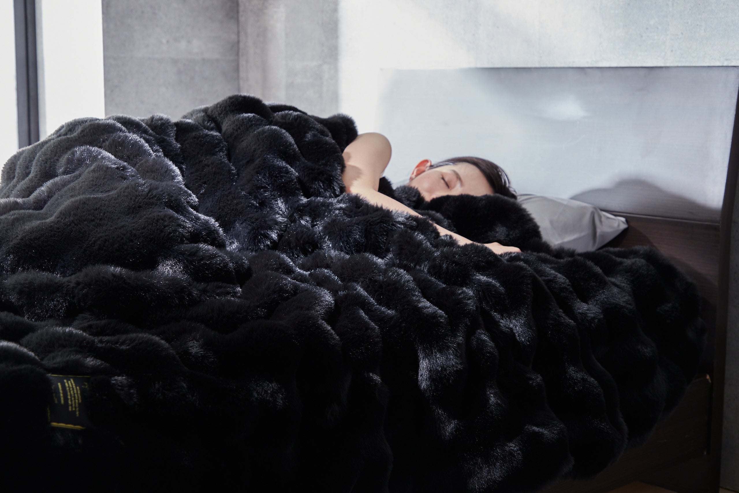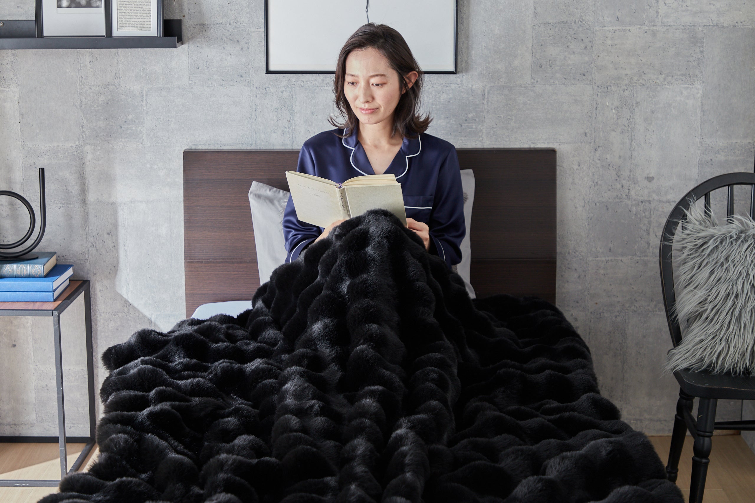 ふんわり5層毛布はブラックカラーのみ。ベッドやソファに掛けておくだけでお部屋のインテリア性をワンランク高めてくれるプレミアムでシックなカラーを厳選しました。