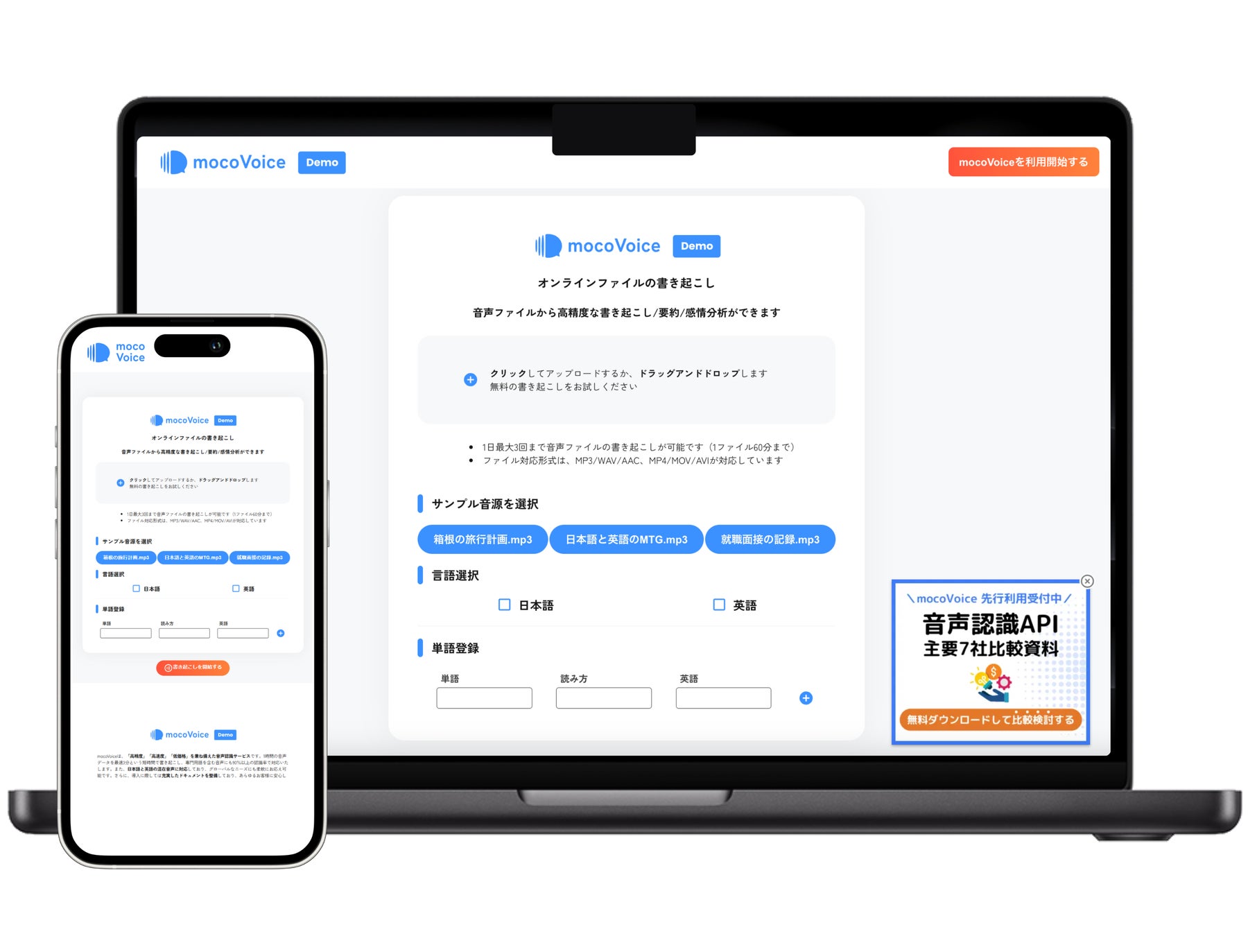mocoVoice Demoサイト: https://demo.mocomoco.ai/
