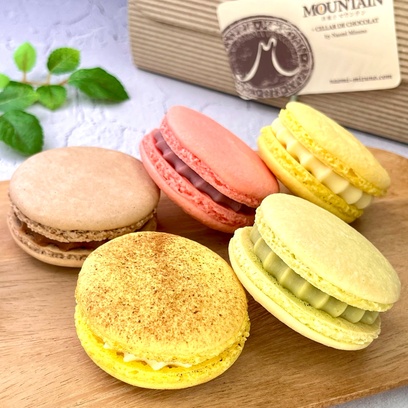 「コンビナシオン」は、ミルクジャムとガナッシュを重ねた大ぶりのマカロン5種セット。