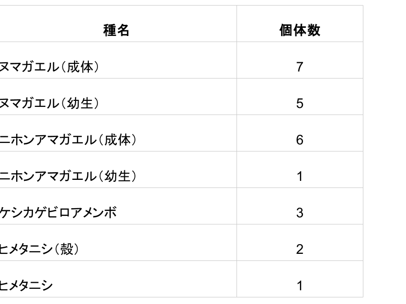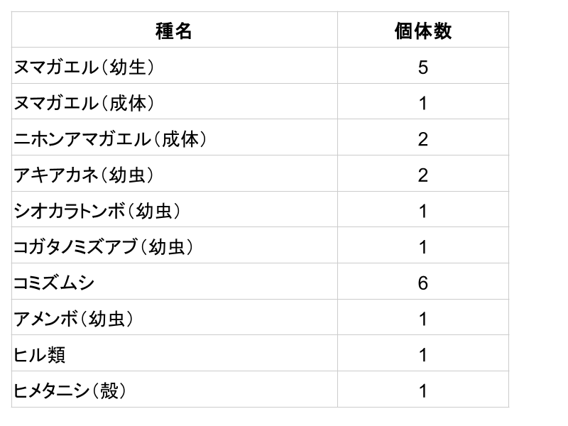 ※6/30、7/10の調査結果は同定が完了しておらず省略させていただきます。完了後改めて報告いたしますので、気になる方はご連絡ください。