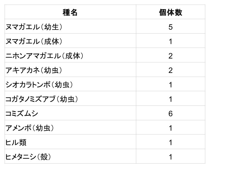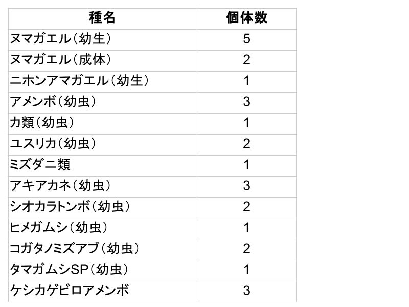 3回の結果より、中干し自体による生物個体数の減少は見られるものの、中干し延長によって生物の個体数が激減するといった結果は生じないと言う結果になりました。