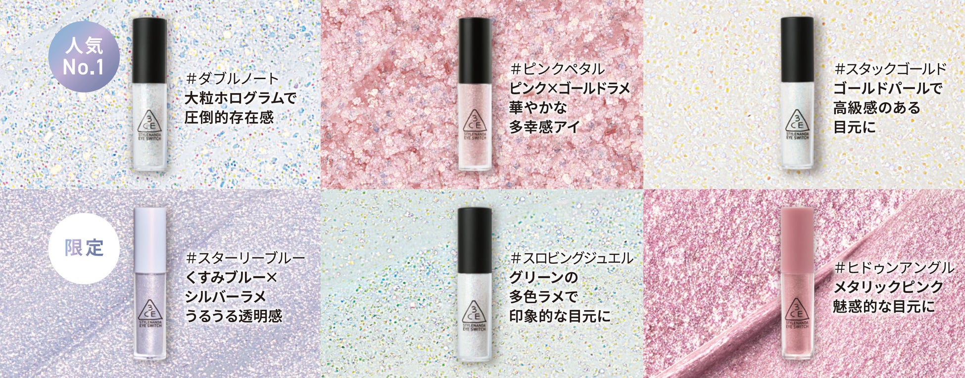 ソウル発のクリエイティブメイクアップブランド「3CE」から、輝きも色味も自在に楽しめるグリッター「アイスイッチ」限定新色「スターリーブルー」が登場。2025年6月21日(土)より発売開始いたします。さらに、発売を記念し、「アイスイッチ」をご購入いただいたお客様に、「3CEオリジナル アイスイッチホルダー」をプレゼント!