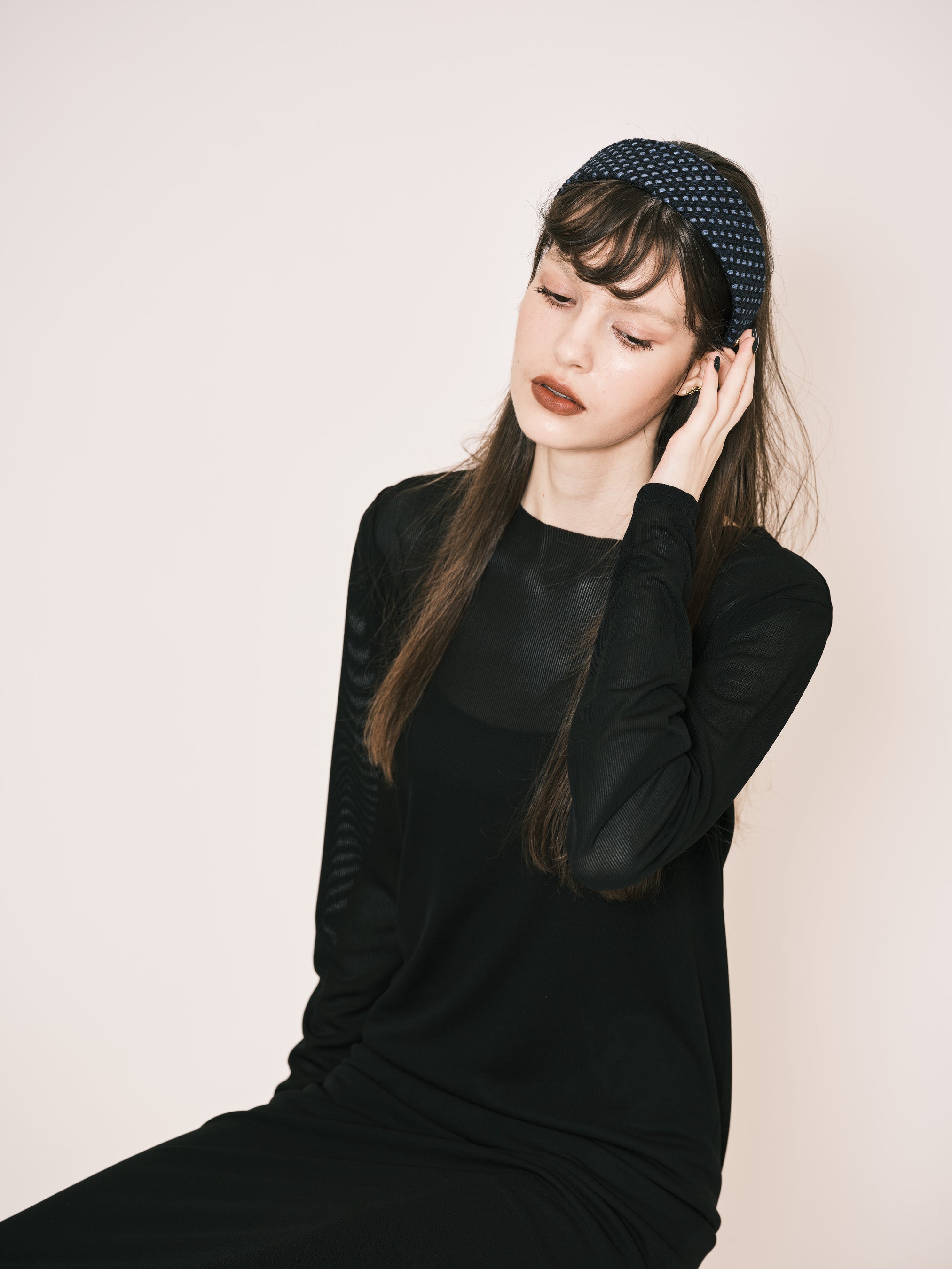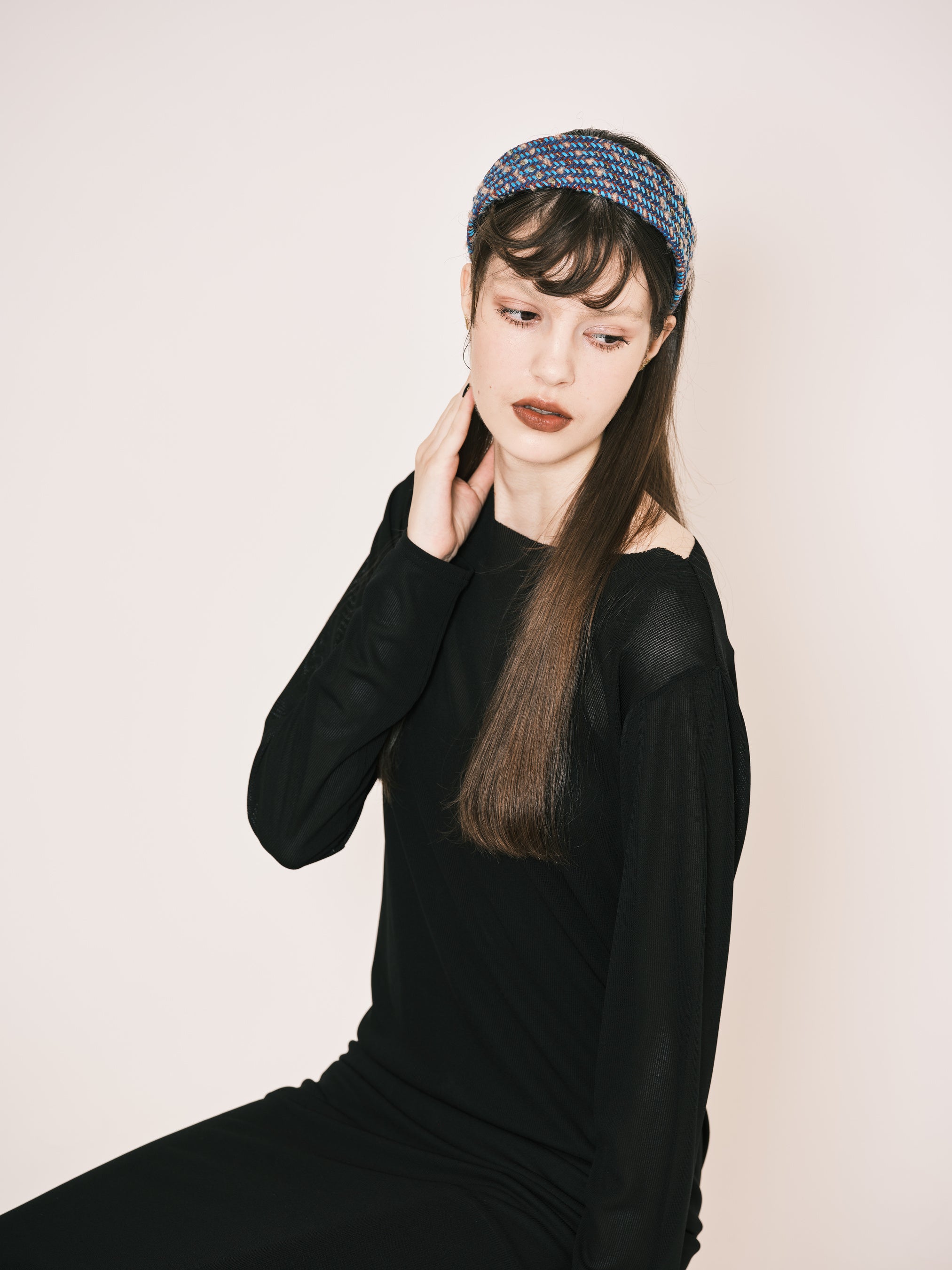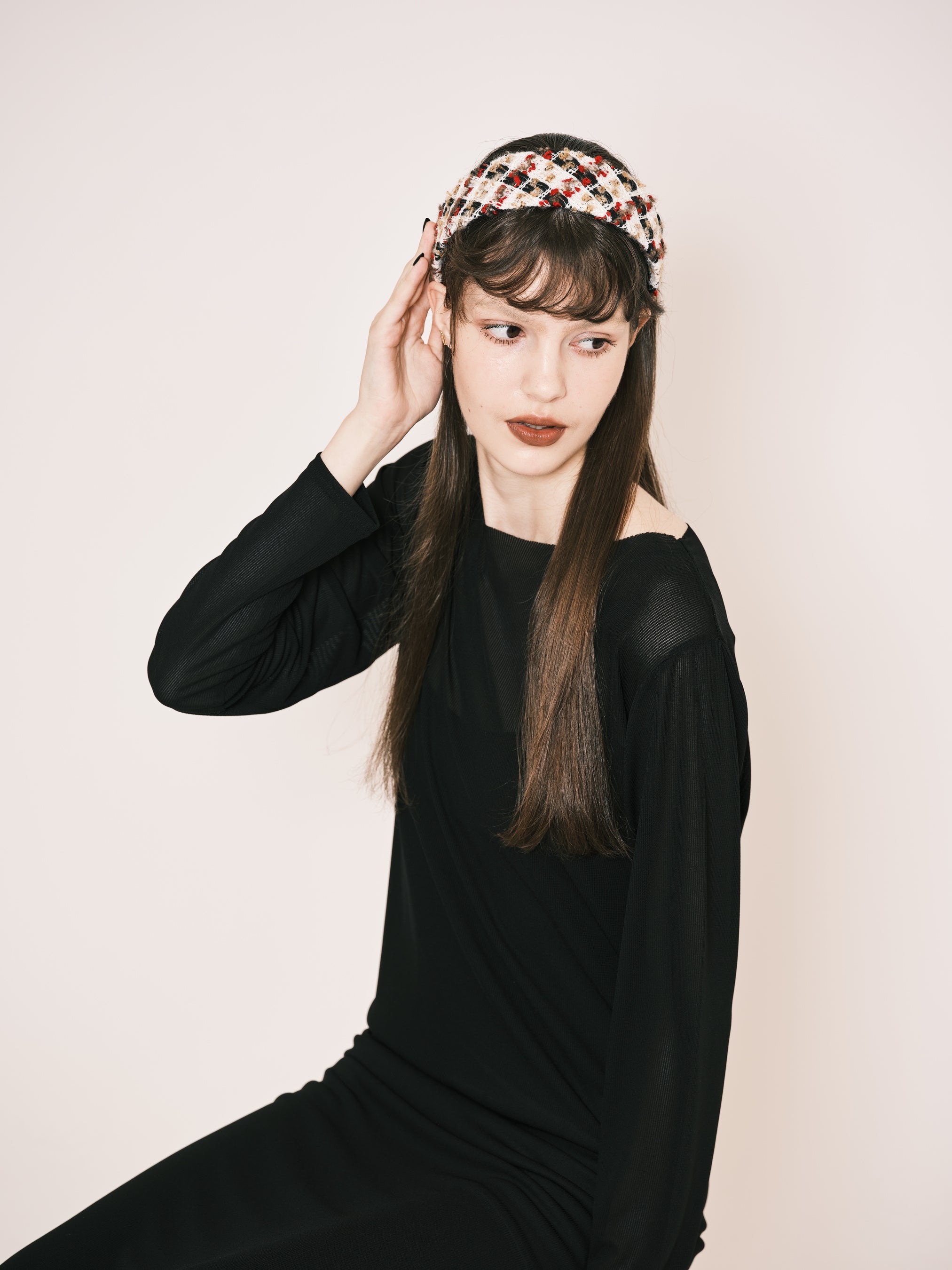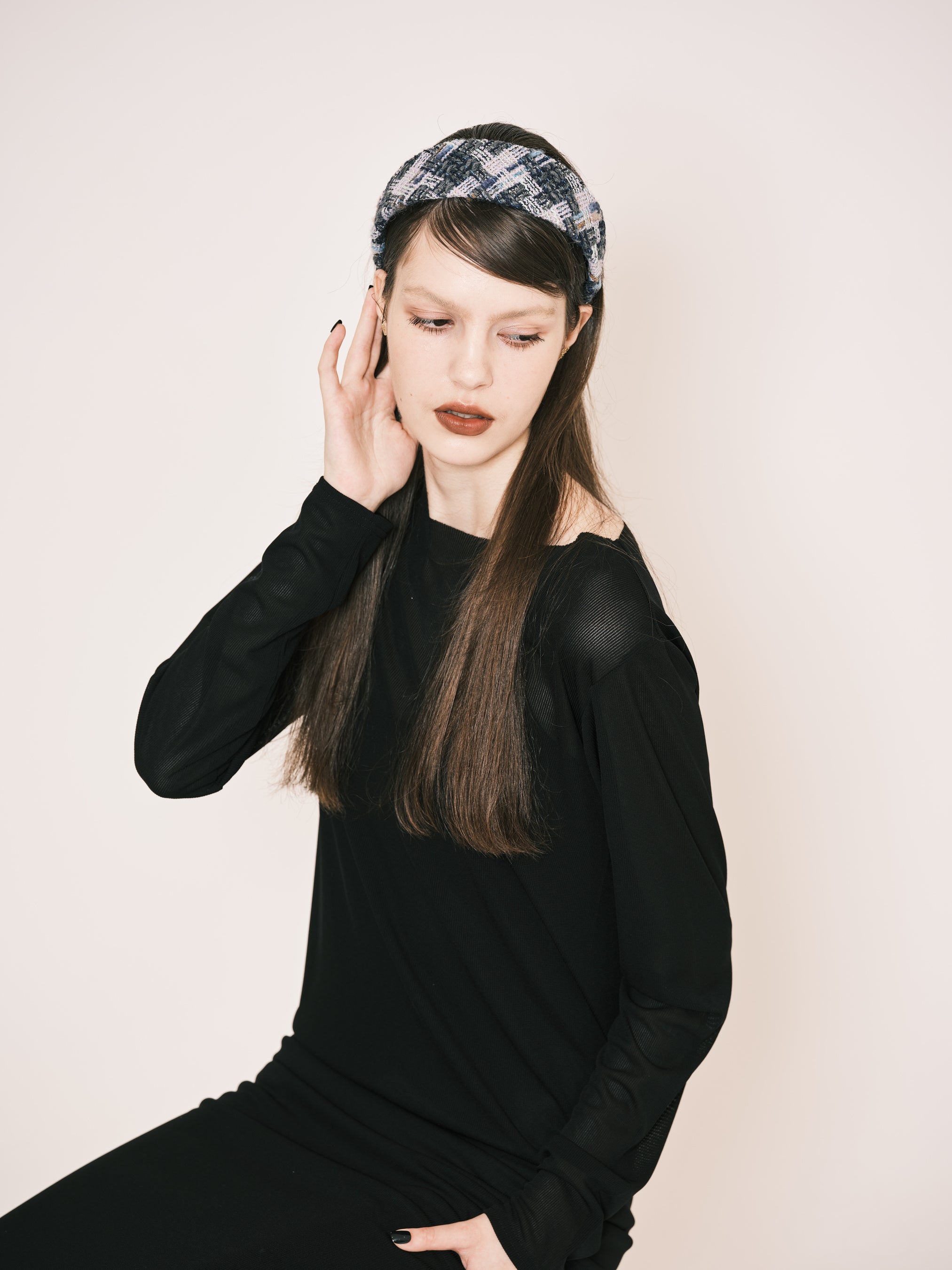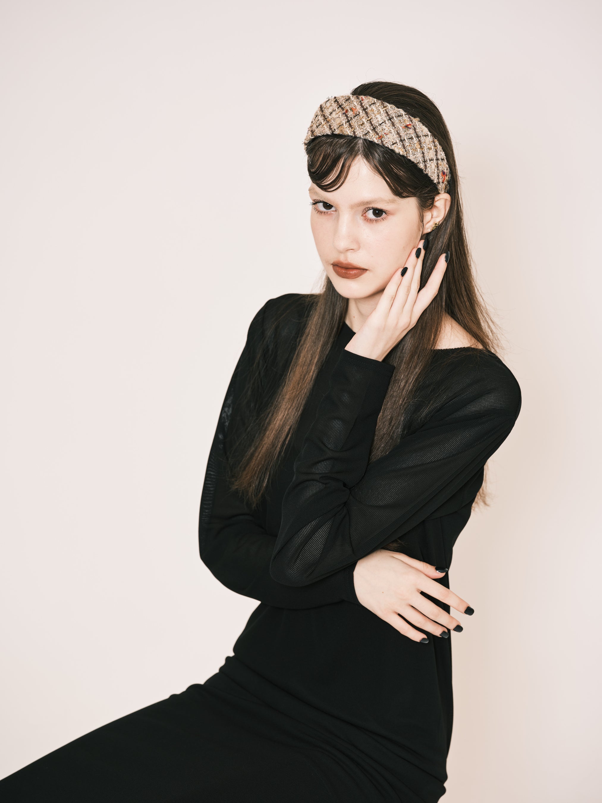 幅のサイズが異なる2種のヘッドバンド。カラーや質感の異なる糸が何層も複雑に絡んだ織りのツイードは、一つ取り入れるだけで季節の装いをシックに演出することができます。ワイドは主役となるべく存在感があるので、一点豪華主義でアレンジをお楽しみいただけます。ベーシックなミディアム幅はレングスを選ばず取り入れやすく、ワイドに比べると控えめな分、ジュエリーは他のツイードアイテムとのコーディネートもお楽しみいただけます。