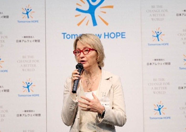 次に、同財団評議員会長 兼 日本アムウェイ合同会社 社長イリーナ・メンシコヴァより、「本奨学金は、支援を必要とする学生を経済的に支えるだけでなく、同じ価値観を共有するコミュニティの中で学び合い、将来は誰かを支える存在へと成長してほしいという想いから生まれました。自分の夢に忠実であり続け、正しい選択を積み重ねていけば、必ずより良い明日につながると信じています」と奨学生への励ましを込めた祝辞が贈られました。