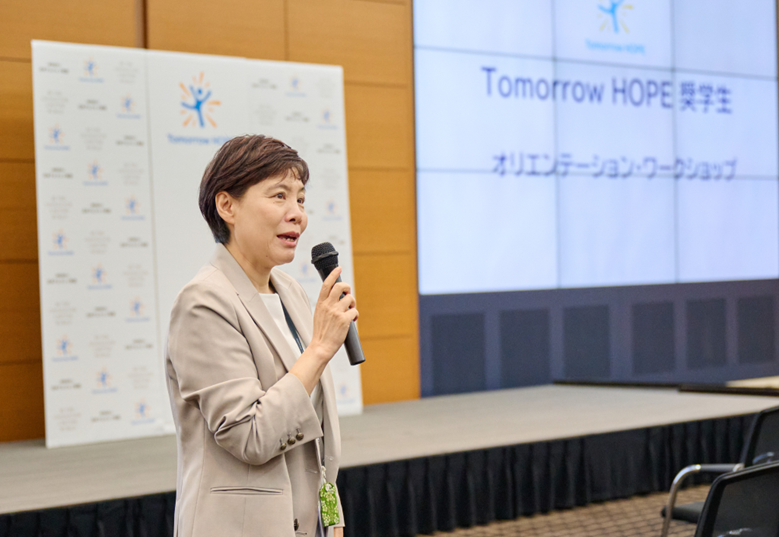本奨学金プログラムは、Tomorrow HOPEプロジェクトの一環として、経済的な理由で大学等への進学が困難な学生を対象に、返還義務のない給付型奨学金として年間60万円を支給するほか、入学時・卒業時に各10万円のお祝い金、国内外研修費用の一部を提供し、入学から卒業までの最長6年間、将来の夢に向かう学生たちを継続的にサポートするプログラムです。