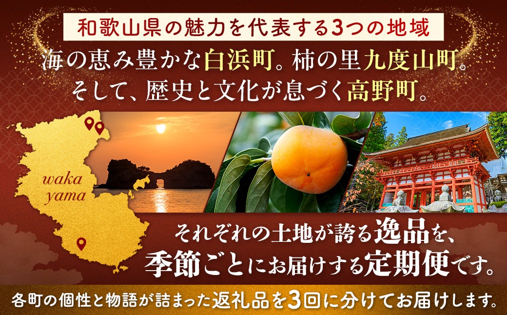 [観光まちづくり相互連携協定記念]町の逸品定期便 ~白浜町・九度山町・高野町から心を込めてお届けします~[定期便・全3回]
