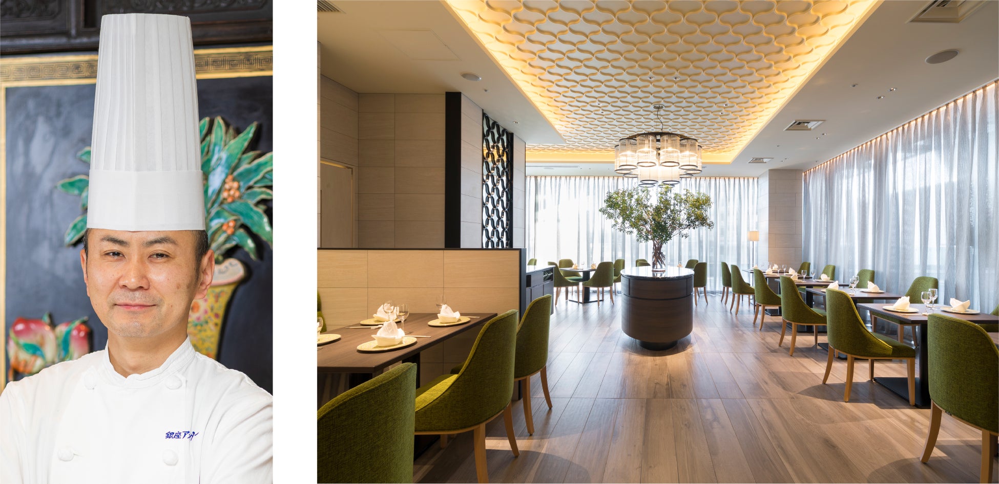 都会の喧騒を忘れる上質なプライベート空間で、銀座アスターの本格中国料理を軽やかにお楽しみいただけるレストランです。都心にありながらも緑があふれる景観と開放的な空間は、銀座アスターの伝統に現代的な感性を取り入れた、ひと味違う中国料理を演出いたします。