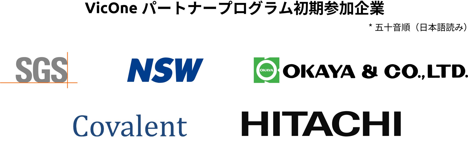 初期パートナーとして、SGS株式会社、NSW株式会社、岡谷鋼機株式会社、Covalent株式会社、株式会社日立ソリューションズ・テクノロジーに参加いただきました。これらの企業様と共に、技術連携や顧客への共同アプローチなど多岐にわたる協業を推進してまいります。