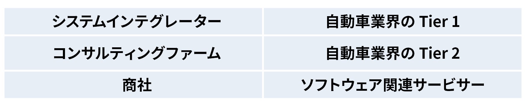 本プログラムは、多くの方々に関心を寄せていただき参加を検討いただけるよう、一部の競合企業を除き、企業種・業種などの制限なく参加が可能です。本プログラムへの参加が想定される企業・業種の例および提供サービスの概要は以下の通りです。