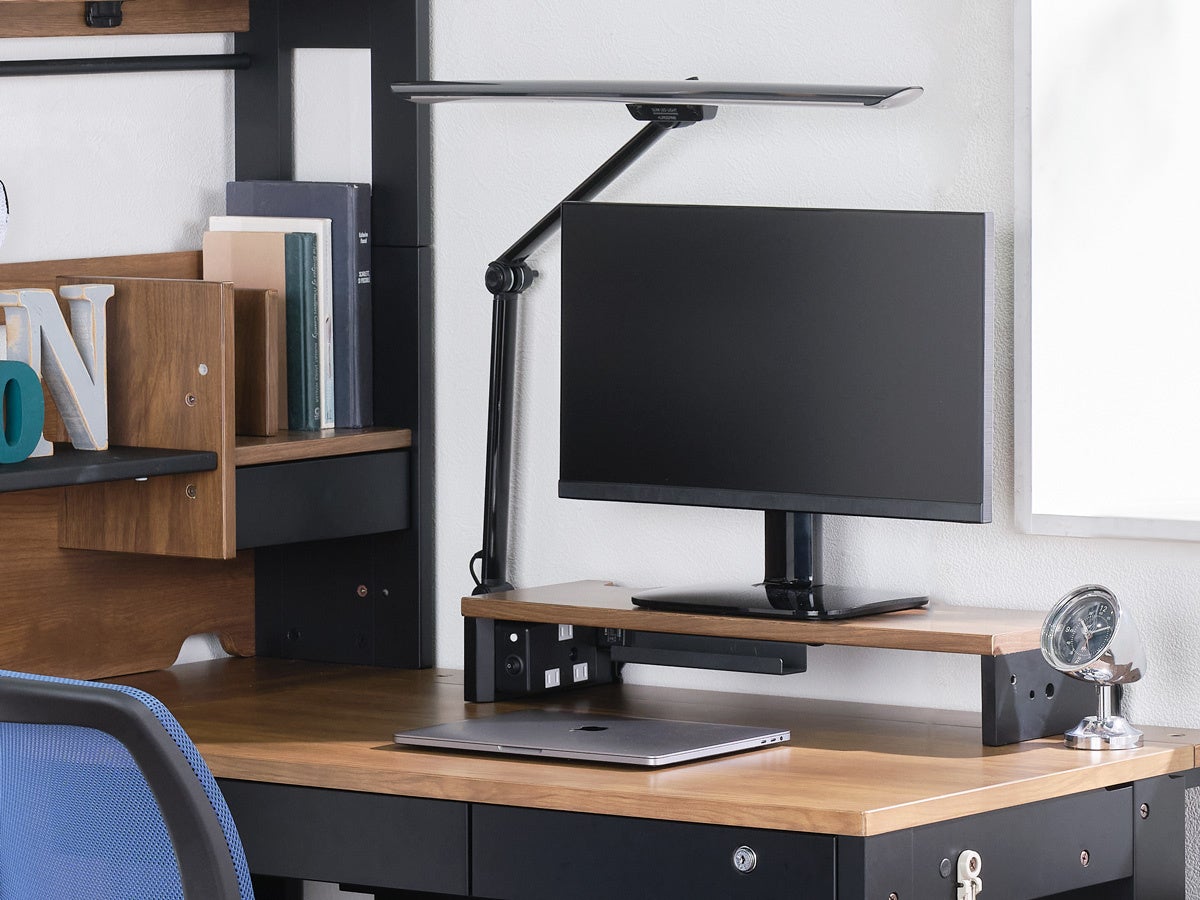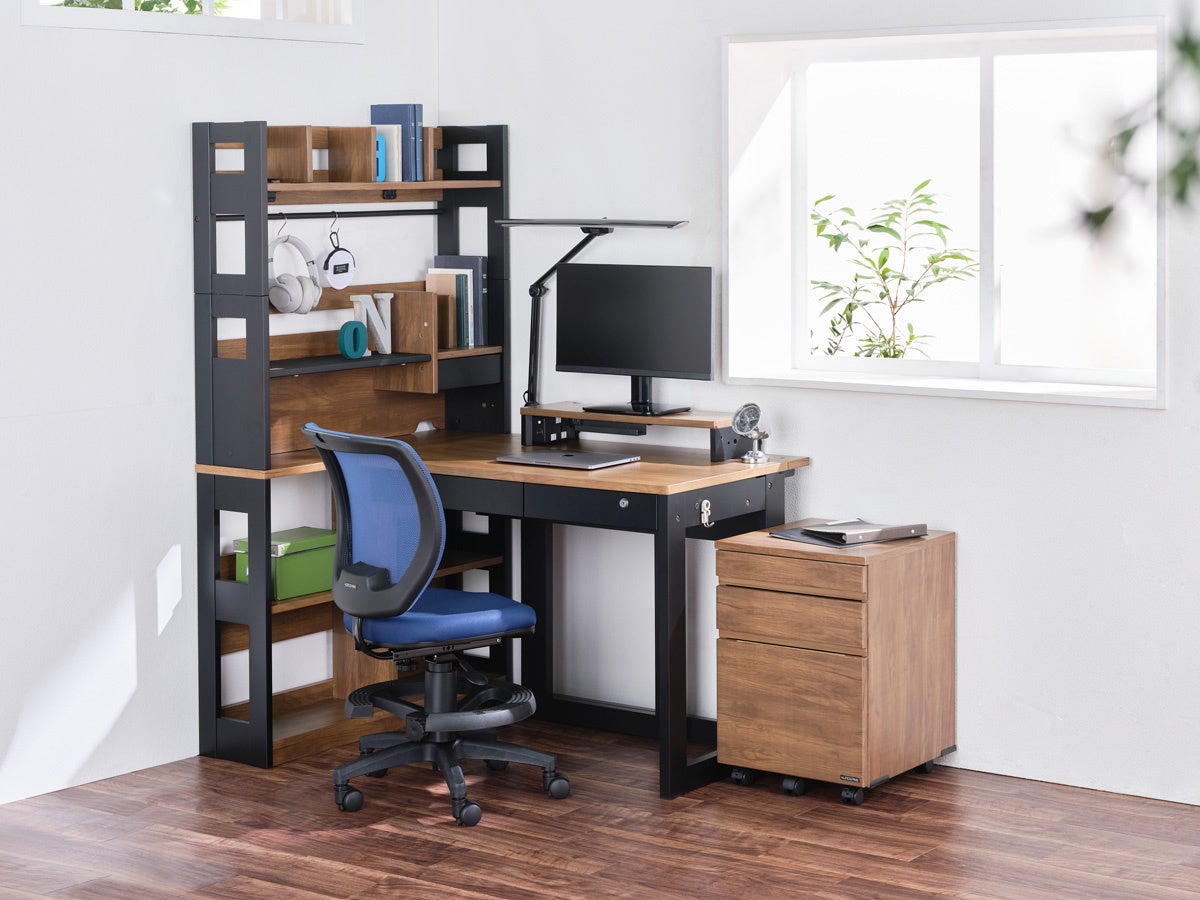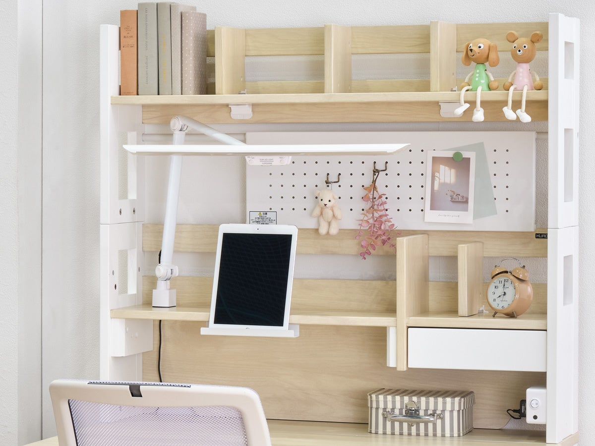 書棚の棚板をモニター台やタブレット台として活用できるほか、デスク天板を後方に約10cm拡張できる補助天板を装備。PC作業やノートや教科書を広げる際でもスペースを確保できます。