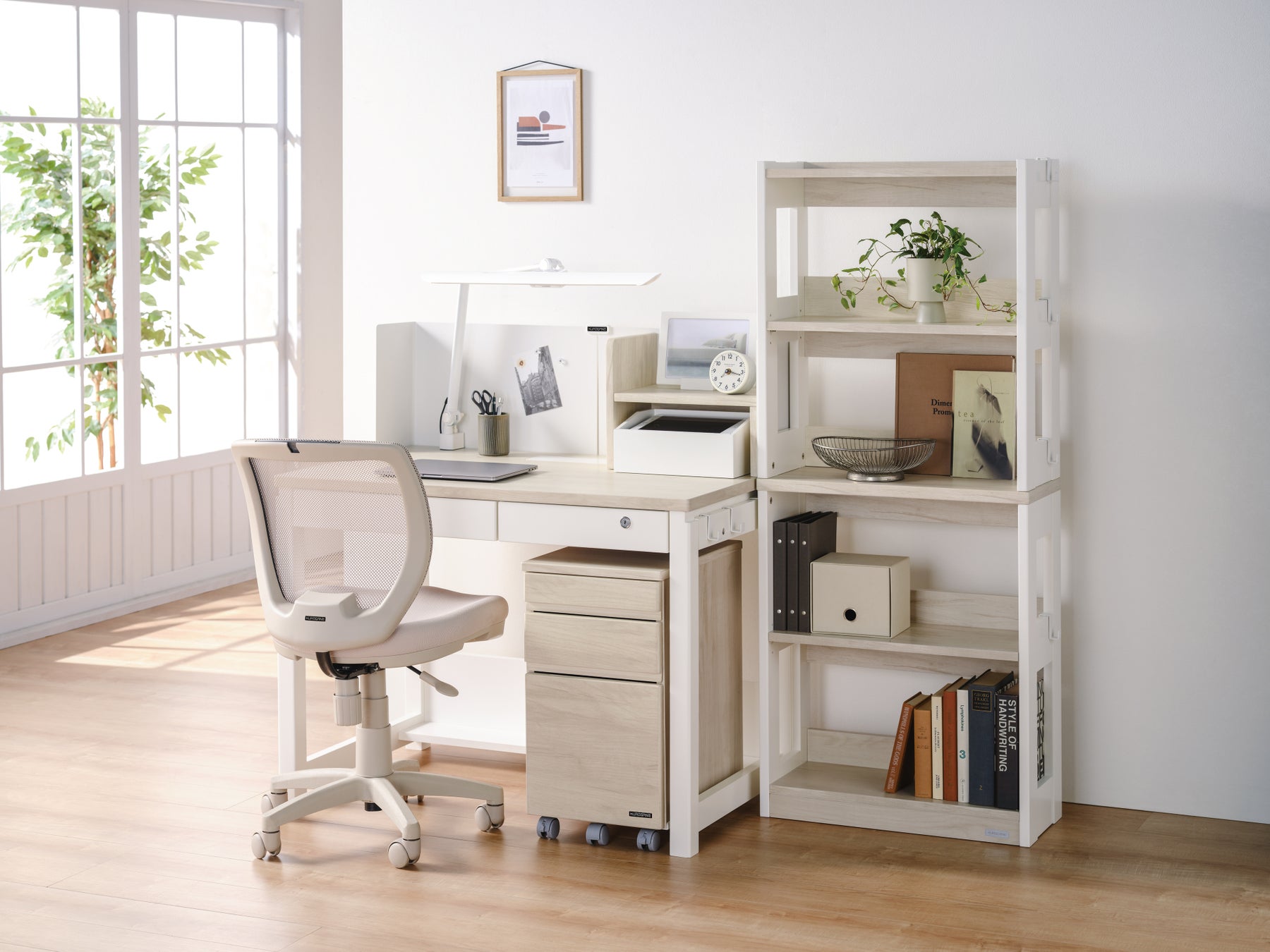 デスクでは、主力シリーズ「THE DESK」において、組み替え型コンポーネントデスク「THE DESK CD」シリーズのラインナップが拡充しました。2025年モデルで好評をいただいた「THE DESK CD」シリーズに、ユーザーおよび販売店様からの要望に応え、書棚2段のハイタイプ『KSH-26型』を新たに追加。より充実した収納力を実現するハイタイプモデルの投入により、中高生以上の幅広い層に対応するシンプル設計の「THE DESK」と新入学需要を主軸とした「THE DESK CD」のハイタイプ・ロータイプが揃い、選択肢が広まります。