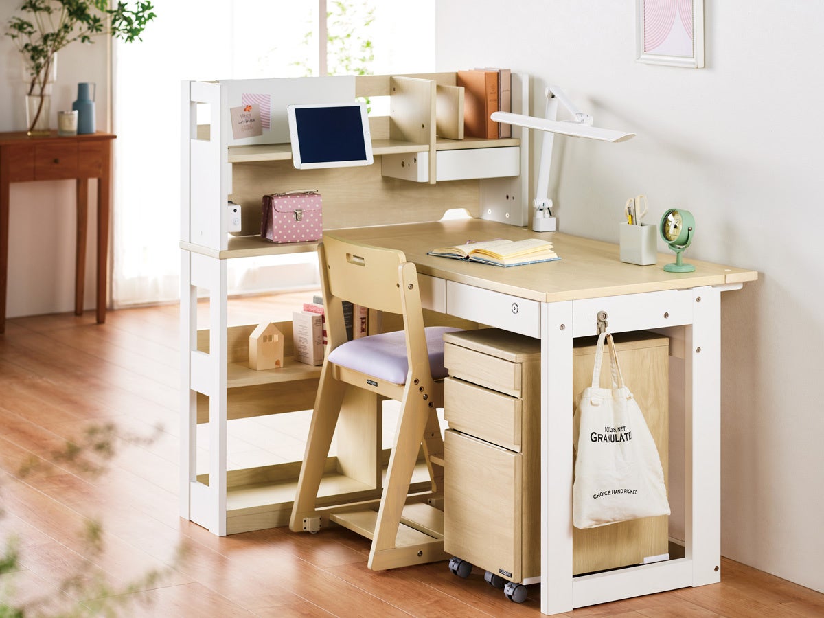 シンプルで機能的な設計により、小学生から中高生まで幅広い層に支持されているデスク。必要十分な機能を備え、多くのユーザーから支持を得ている定番モデルです。