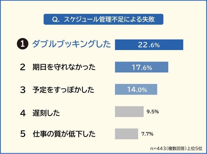 ・スケジュール管理不足による失敗1位は「ダブルブッキング」