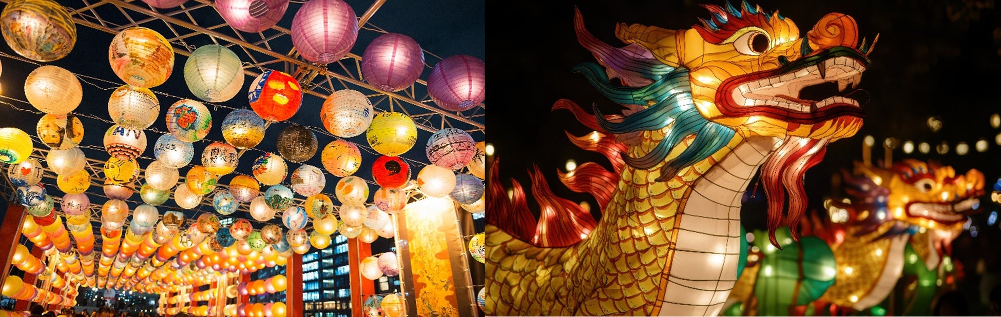 会場では、夜はカラフルで幻想的な台南ランタンが会場を彩り、春節ならではの祝祭感あふれる空間を演出します。