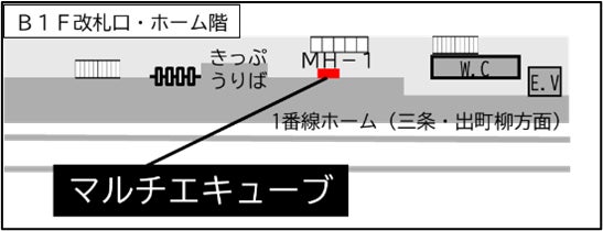 京阪電気鉄道 七条駅 B1F三条・出町柳方面専用改札口外(1セット21口) 祇園四条駅 B1F改札口外(1セット27口) 三条駅 B1F改札口外(1セット18口) 出町柳駅 B1F叡電口改札口外(1セット27口) |