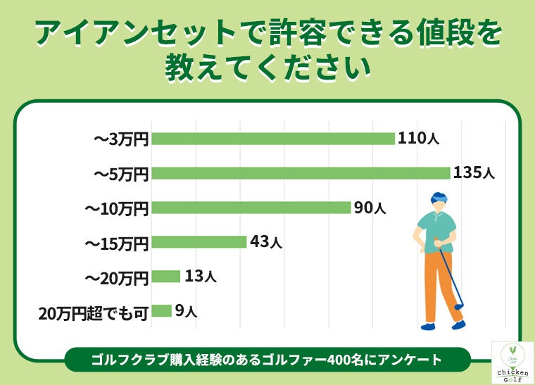 今回はゴルフクラブの購入経験があるゴルファー400名を対象にアンケート調査を実施し、クラブ選びの際に重視されるポイントや、番手別の許容価格帯に関する実態を明らかにしました。