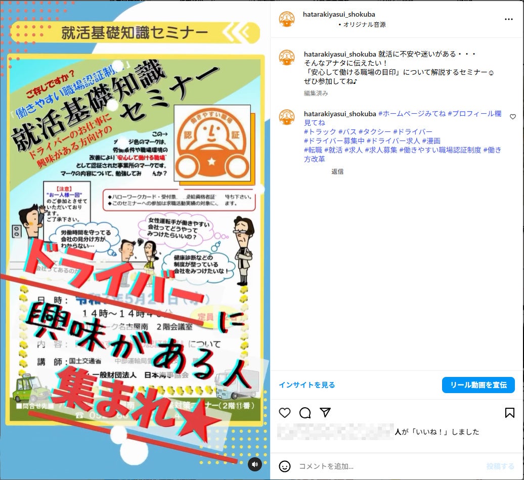 事務局では、引き続きこのようなセミナーを通し、求職者に働きやすい職場作りに取り組む認証事業者の姿勢を伝え、ドライバー職を職業選択の一つとして考えるきっかけを提供し、運送業界や認証事業者への貢献となることを目指します。
