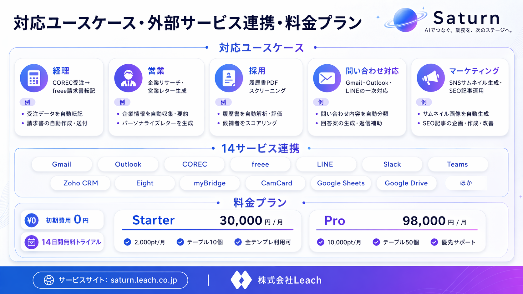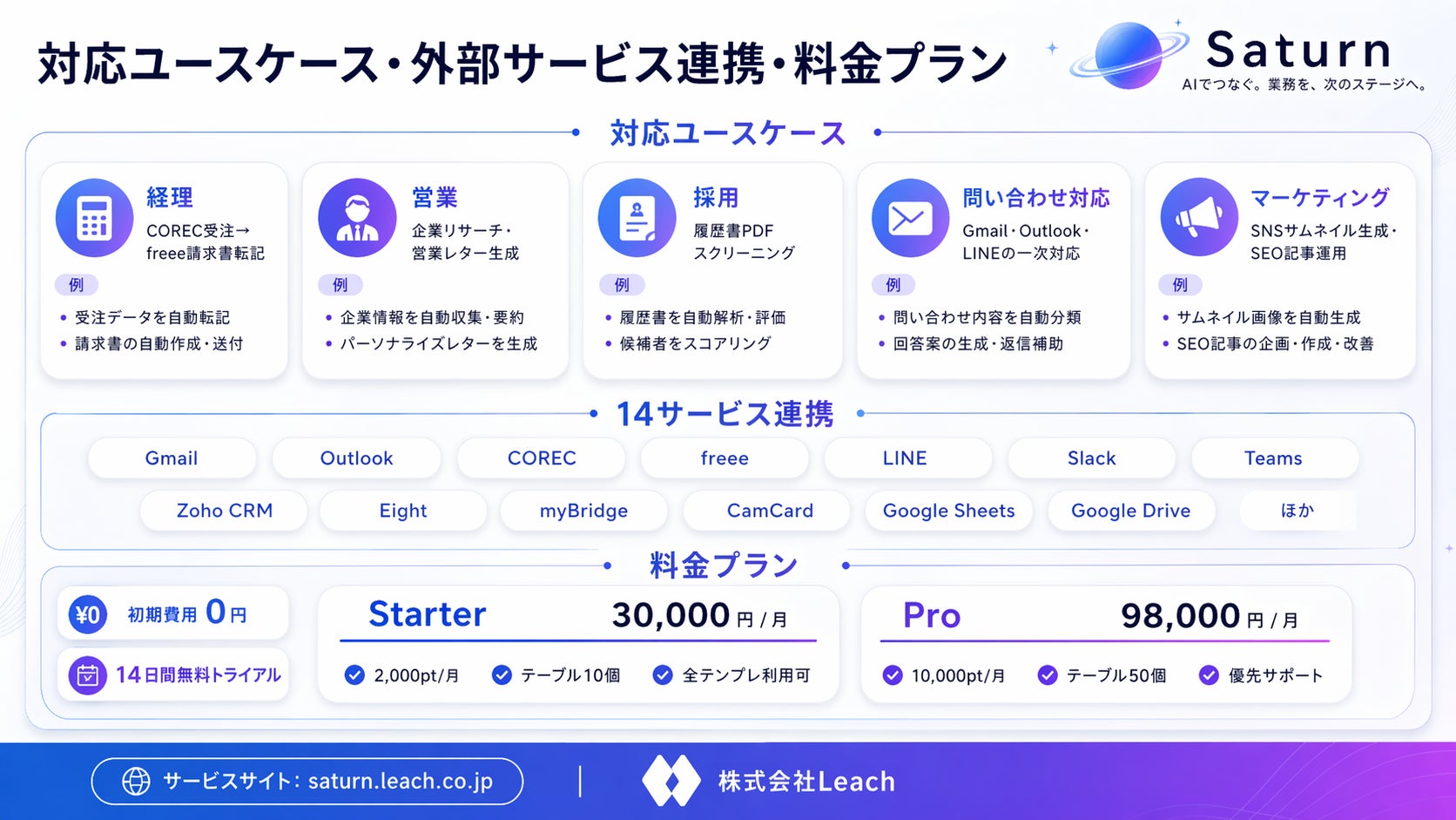 ▶ サービスサイト:https://saturn.leach.co.jp