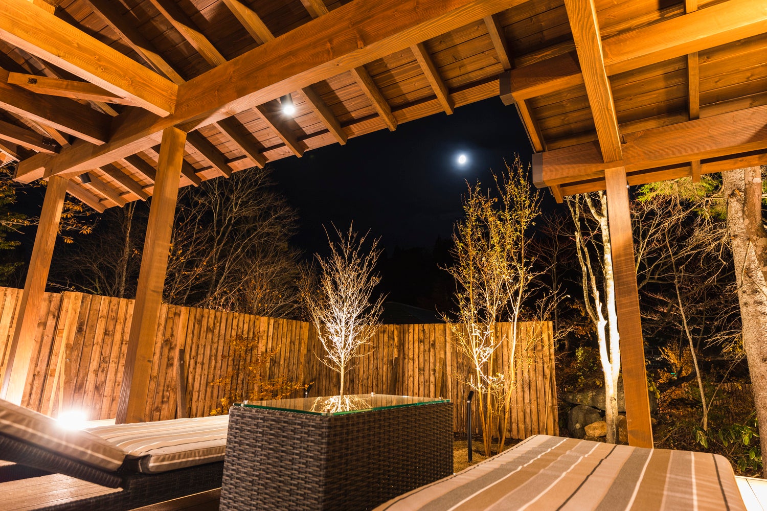 紅葉や朝焼けを楽しむ広々とした空間。メディテーションルームを備え、瞑想やリラクゼーションに最適です。