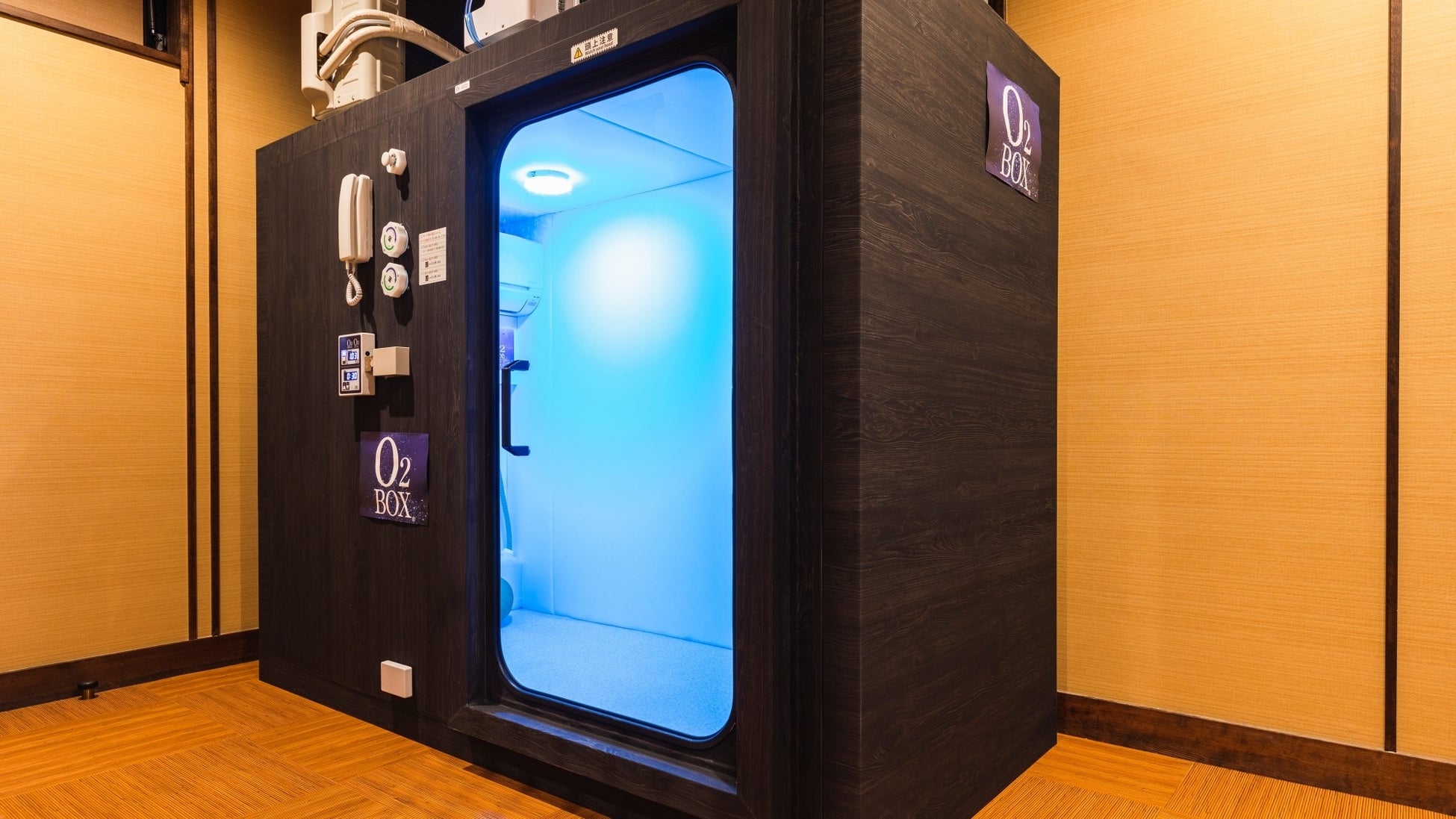 「薬鶴」と「瓢箪」には、高圧酸素BOXが完備されております。高圧酸素BOXは、体に高圧の酸素を送り込む装置です。これを使うことで、酸素をたくさん吸収しやすくなり、体の中で様々な良い効果が期待できます。宿泊者は自分自身のリラクゼーションと癒しを極めるために自由に利用できます。