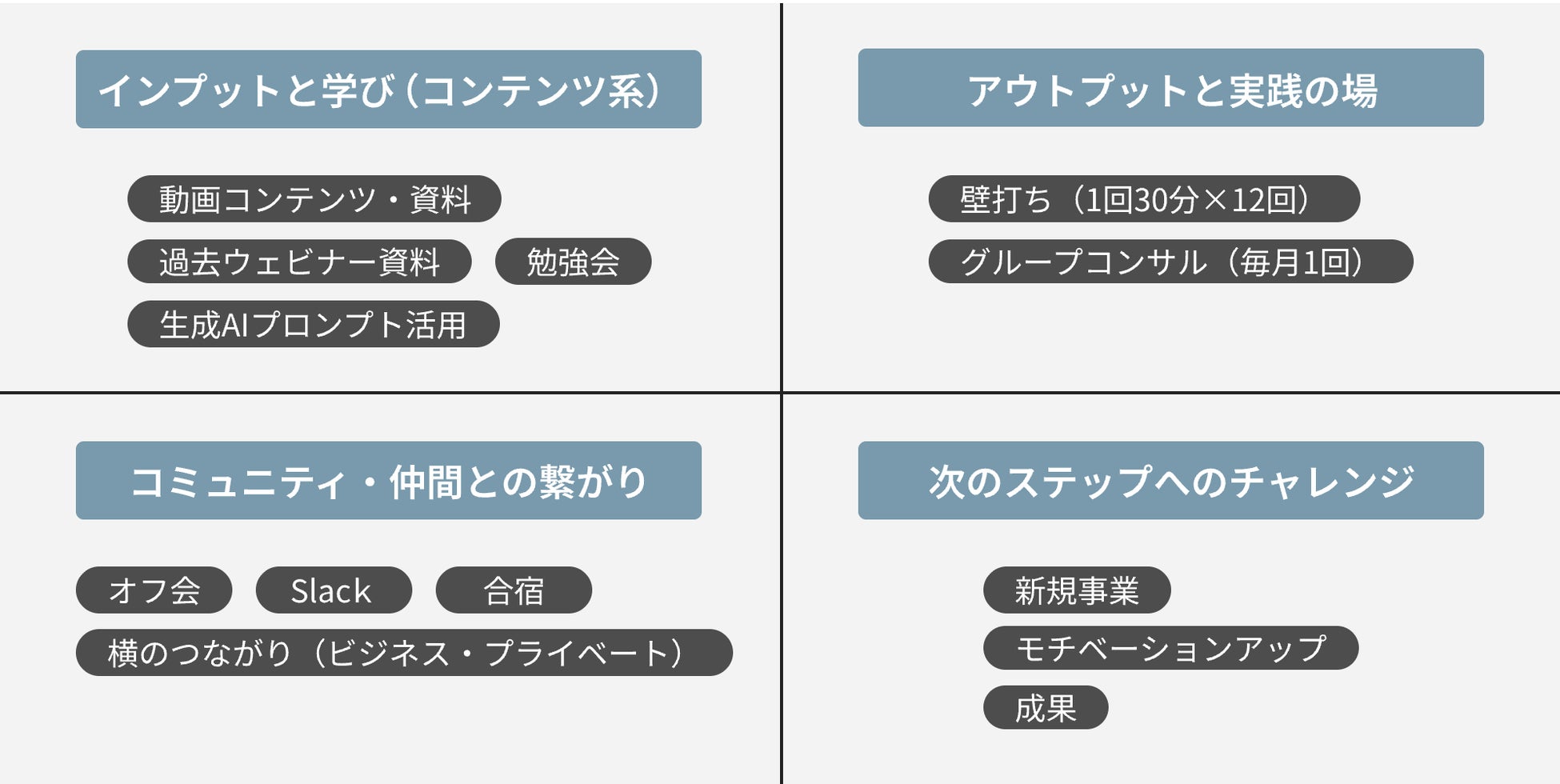 スクールとコミュニティを一体で設計することで、学びと実践が継続的につながる構造を目指します。