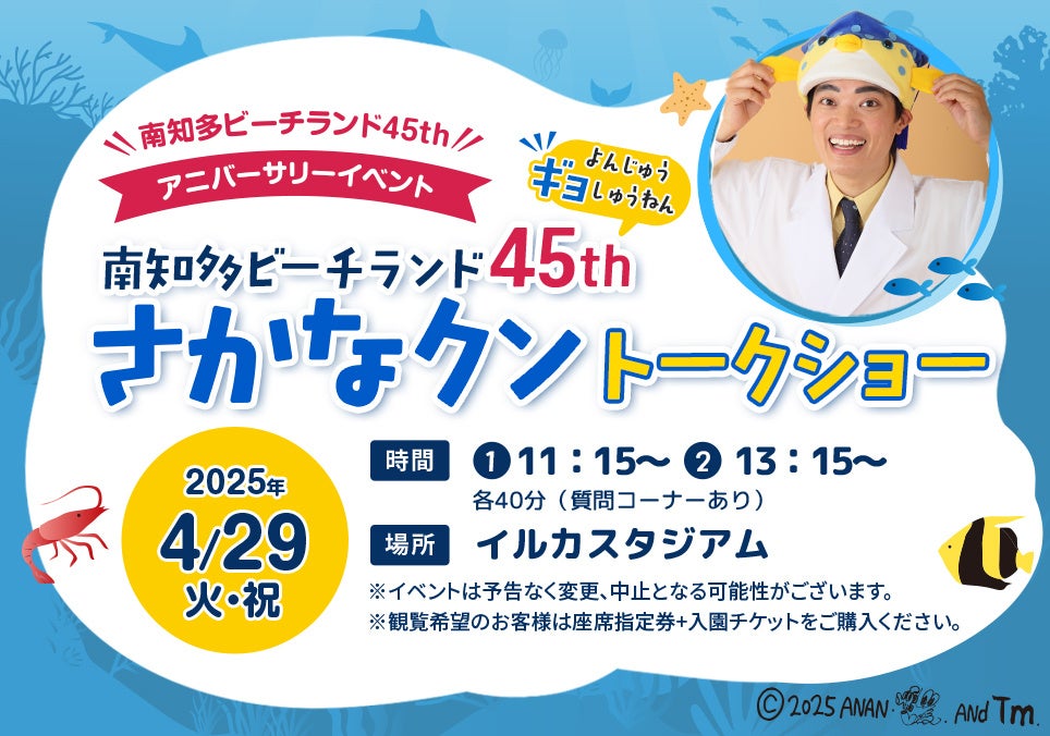 【南知多ビーチランド】 45thアニバーサリーイベント「さかなクントークショー」を開催!2025年4月29日(火・祝)<愛知>