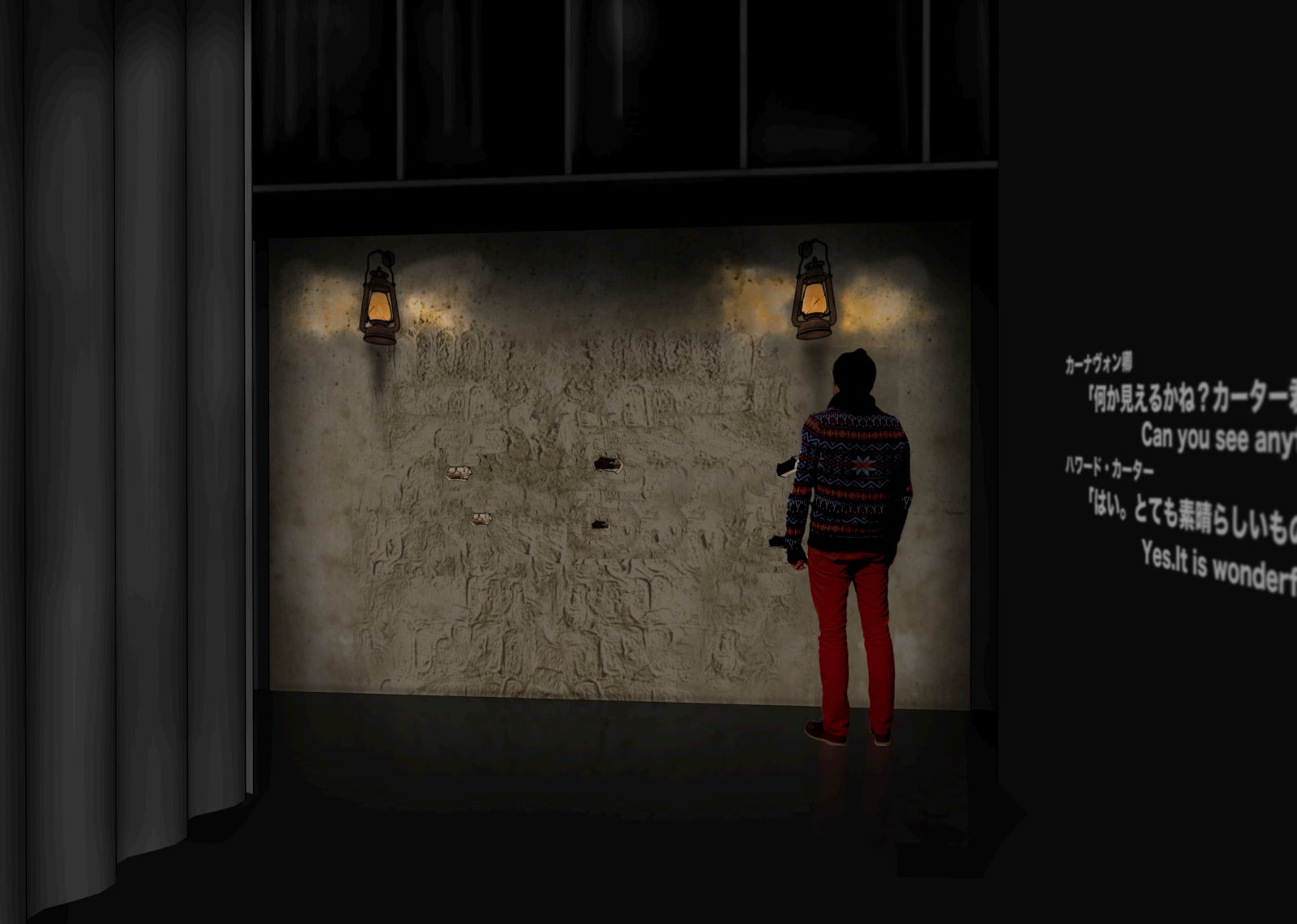 WORLD SCAN PROJECTが実際にカイロ・エジプト博物館に足を運び、ツタンカーメンの数々の遺物をフォトグラメトリ用に撮影し、3D化。会場入り口では、その黄金のマスクを探検家になった気分で楽しめるホログラムを設置しています。本物からスキャンしたいわば「3Dデジタルクローン」の細部の質感にご注目ください。