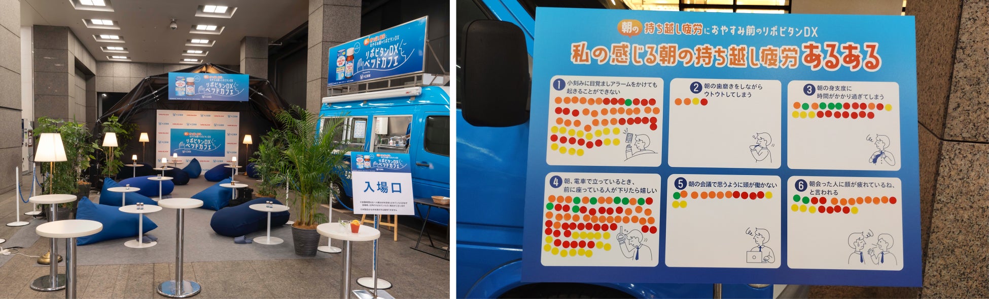 当社は、この「朝の持ち越し疲労」という言葉を広く知っていただくため、「リポビタンDXベッドカフェ」を2025年6月に都内で開催しました。イベントでは、来場者から「朝の持ち越し疲労」にまつわる「あるある」を聴取。その中でも特に多くの共感を得たのが「朝の通勤電車で立っていて、目の前の人が降りると嬉しい」というものでした。