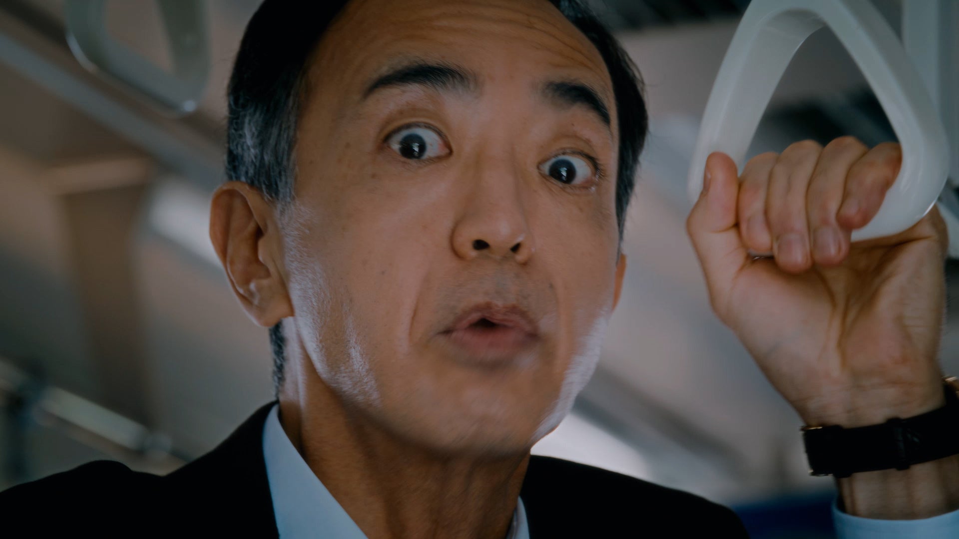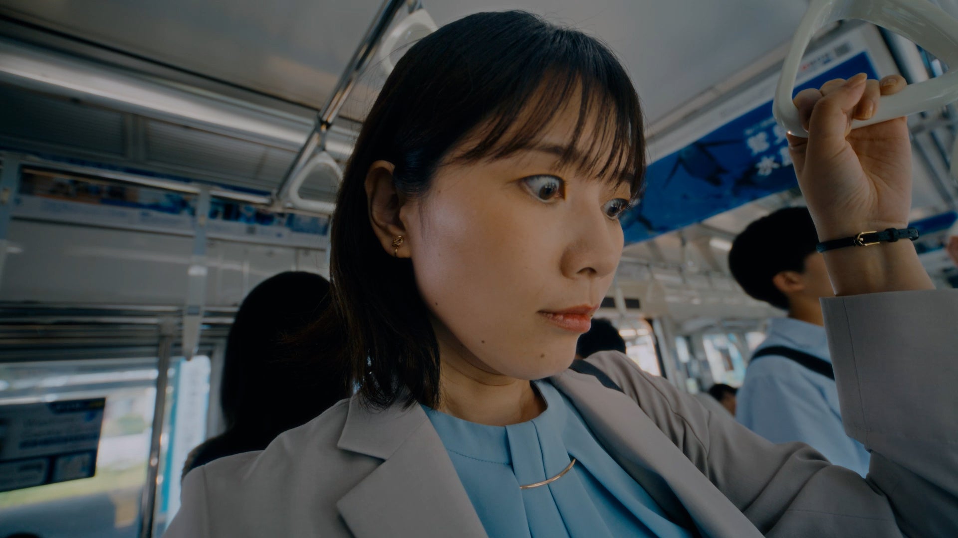 「朝の通勤電車で立っていて、目の前の人が降りると嬉しい」を映像化した本動画は、通勤電車の中で座席を求めて疲れを抱える人々の姿をリアルに描写しました。
