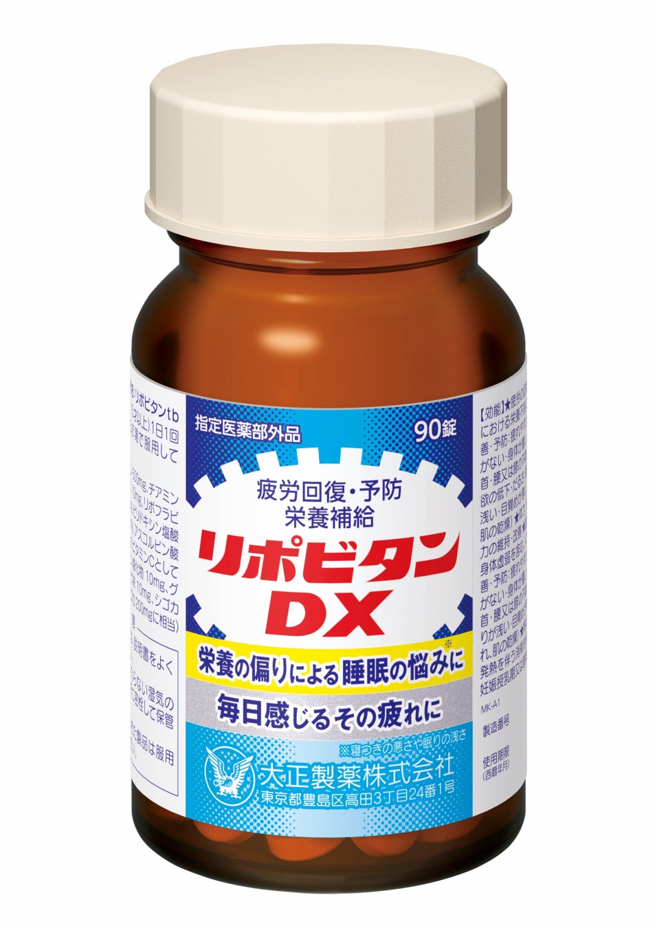 リポビタンDXは、「リポビタン(錠剤)」として発売されたブランド第一号製品以来の、約40年ぶりに登場した錠剤タイプの疲労回復を目的としたビタミン剤です。15才以上1日1回3錠の服用で、エナジーサイクルに働きかけるタウリン500mgやビタミンB1,B2,B6が摂取できます。また睡眠サポート成分のグリシンとシゴカを配合しており、しっかり寝たのに起きた瞬間から疲れている方におすすめの製品です。さらに、おやすみ前の服用を考えて、カフェインを配合していないのも特長です。