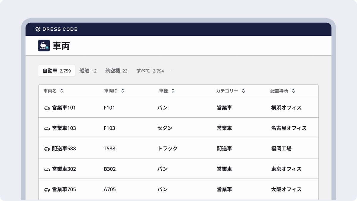 Dress Code株式会社(本社:東京都中央区、代表取締役CEO:江尻祐樹)は、総務部門の業務効率化を推進する DRESS CODE「GA Force」シリーズの新プロダクト、「車両管理/Fleet」をリリースしました。「車両管理/Fleet」は、企業が保有・運用する車両・船舶・航空機といった資産を一元管理できるプロダクトです。車両情報の分散管理や法定点検・保険更新の属人化解消、稼働状況の可視化といった実務上の課題を解消し、車両管理の高度化とガバナンス強化を支援します。