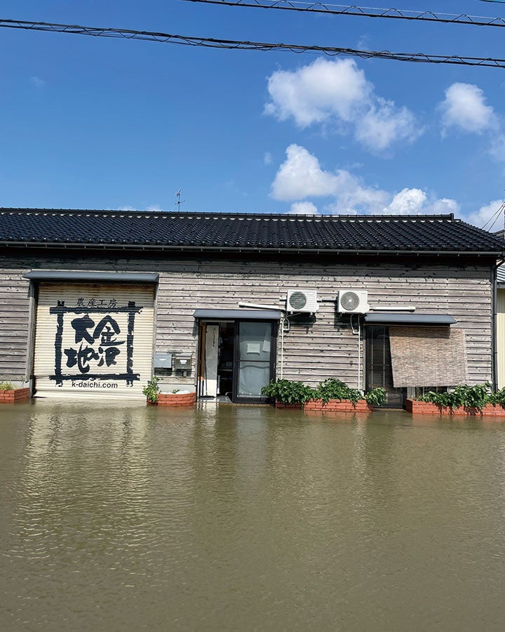 (株)金沢大地(金沢市八田町東9)は、有機栽培で国内規模最大の広大な農地を持ち、加工品も自社農場の原材料までトレースできる、「生産者の顔が見える」食づくりをしています。令和7年8月6日からの線状降水帯の影響により、金沢大地の社屋と倉庫が浸水。幸いにも人的被害はありませんでしたが、限りある貴重な原材料や商品の数々に水がつき、大量の廃棄処分となりました。