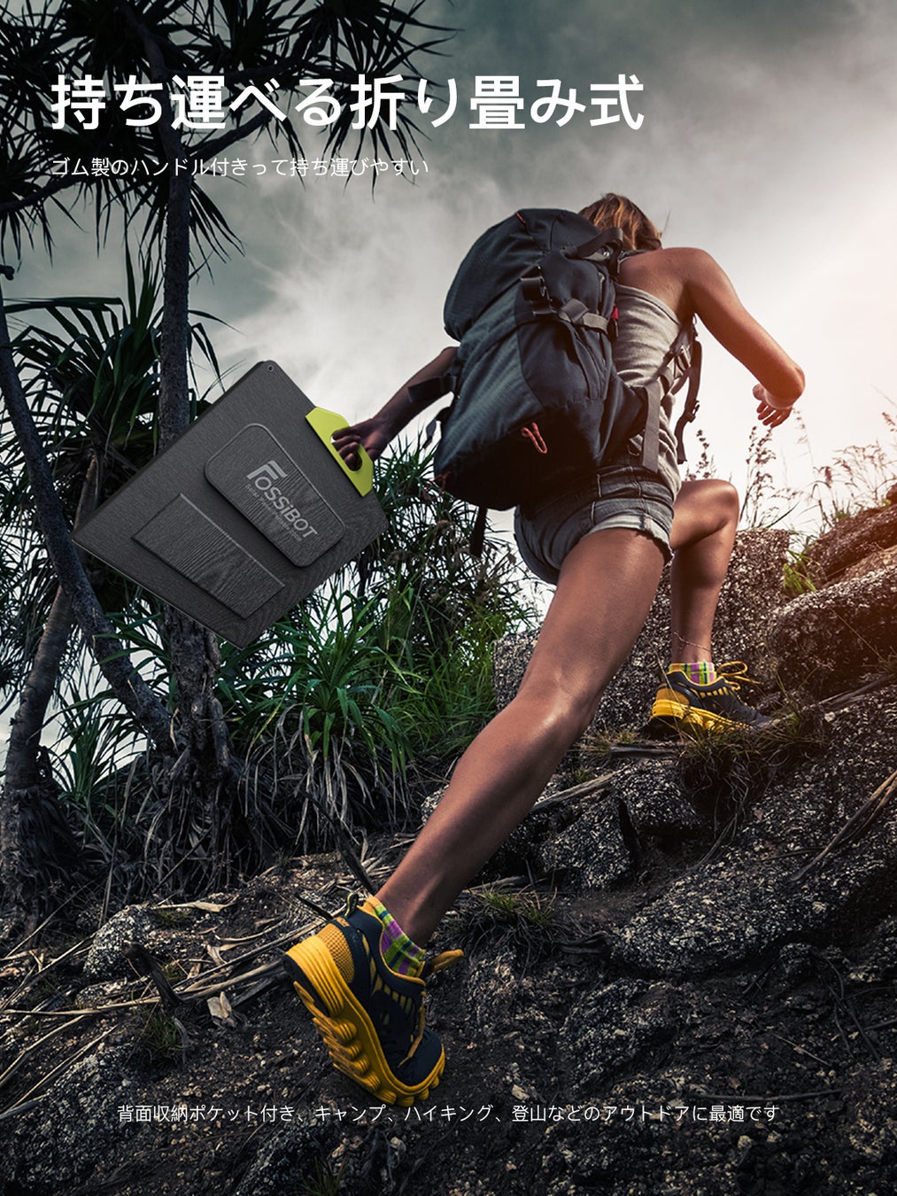 FOSSiBOT ソーラーパネルは、FOSSiBOT ポータブル電源だけではなく、他社のポータブル電源にも充電できます。高効率により、太陽を最大限に活用し、太陽光を電気エネルギーに変換できます。。緊急時だけでなく、日常生活で使用で、月々の電気使用量を減らす節電にも役立ち、環境にやさしいエコなライフスタイルを実現することができます。