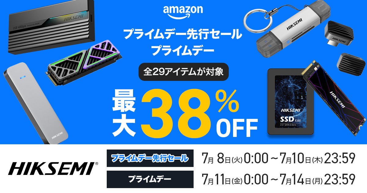 株式会社Taurus(株式会社トーラス、本社:東京都)が公式代理店を務めるHIKSEMIは、Amazonで開催されるプライムデー先行セール(7月8日~7月10日)及びAmazon プライムデー(7月11日~7月14日)にてHIKSEMI製品を最大38%OFFのセール価格で販売いたします。