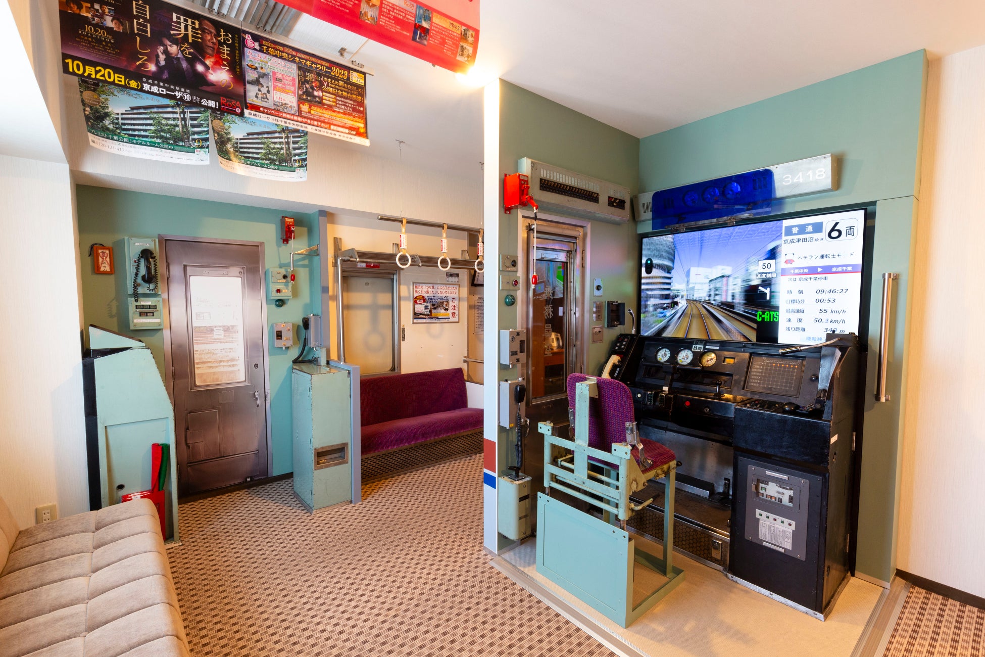 営業運転を終了した京成電鉄3400形3418編成(一部3438編成)の部品を再利用し、本物の運転台や計器類、表示灯類、車掌スイッチ、車掌台などに触れながら運転シミュレーター体験をすることができます。この他にも同車両に係る展示品を多数設置するなど、京成の電車の魅力を感じながらご滞在いただけるプランです。