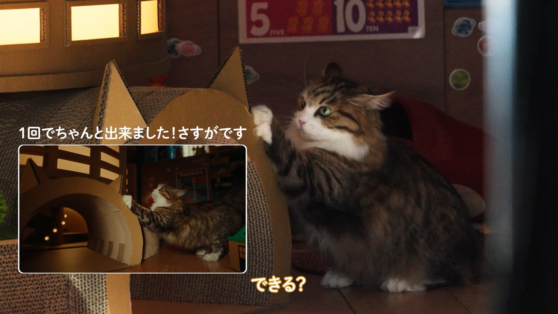 本作では、ENEOSでんきに新規お申し込みで電気料金が最大6,000円割引となる「新生活乗り換えキャンペーン」の話題化施策として、最大6,000円割引の“おトクさ”を、6,000円分相当のダンボール98箱(※1)で表現し、全高2.3mのお猫さま専用タワーマンションを竣工させました。でんき仕掛けのキュウリとナスが、SNSで大きな話題となった前作『精霊馬パレード』の続編として、お猫さまの生活もでんきで快適にする新たな挑戦を描きます。前作に引き続き、人気声優・梶裕貴氏が、ナレーションを担当します。また、2月19日(木)〜2月22日(日)の期間、猫の聖地とも呼ばれる東京・豪徳寺エリアにて「ENEOS CAT TOWER」の実物が見られるイベント『ENEOS CAT TOWERにゃい覧会』も開催します。