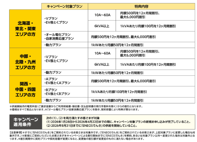 【ENEOSでんき 新生活乗り換えキャンペーンについて】