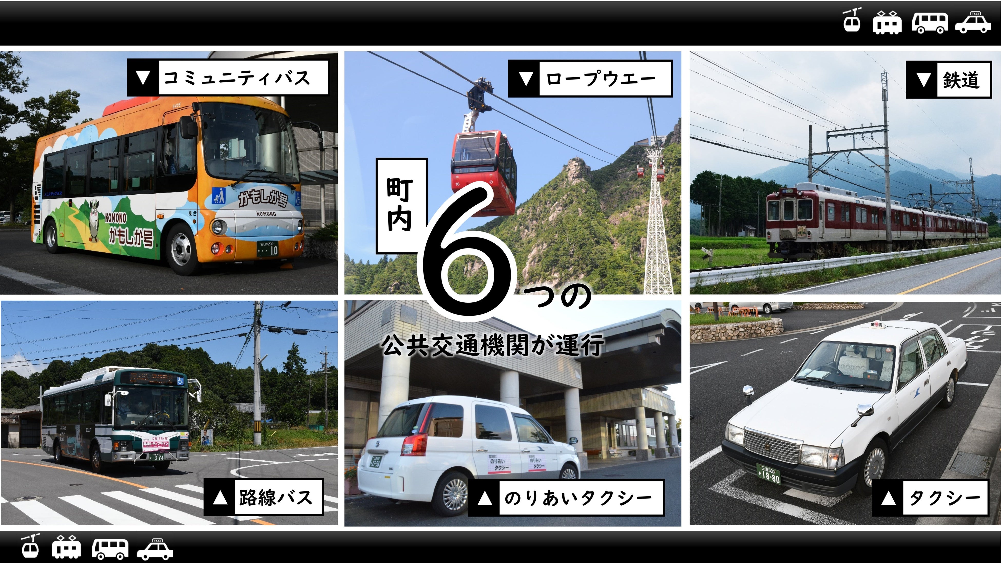 菰野町では現在、官民合わせて6つの公共交通機関が運行しております。「公共交通で気軽におでかけしたくなるまちを目指して」を基本方針に菰野町地域公共交通計画を令和6年3月に策定し、年間4回開催される菰野町地域公共交通会議を通して基本方針の実現を目指しています。