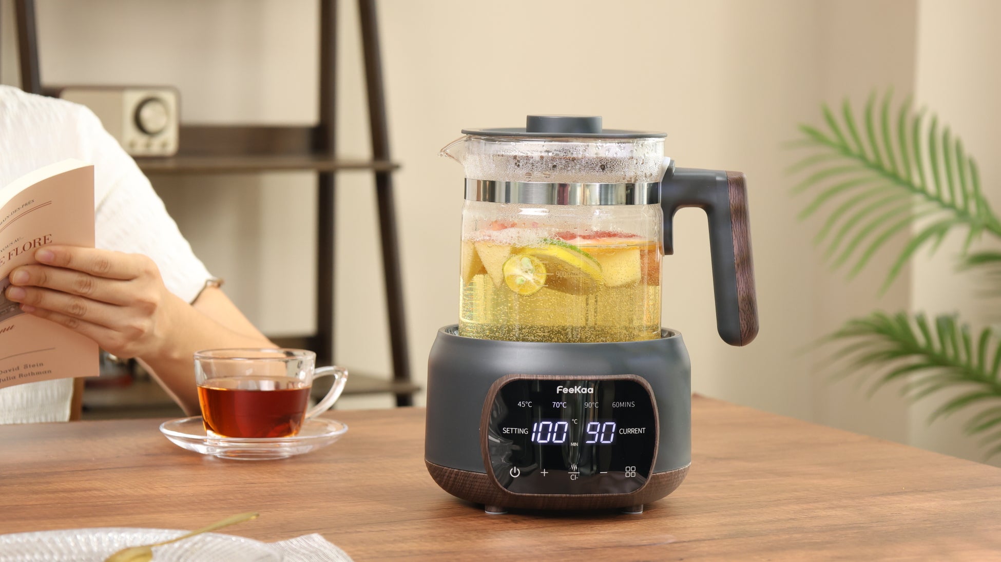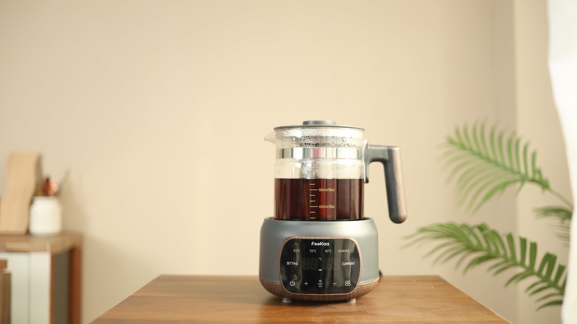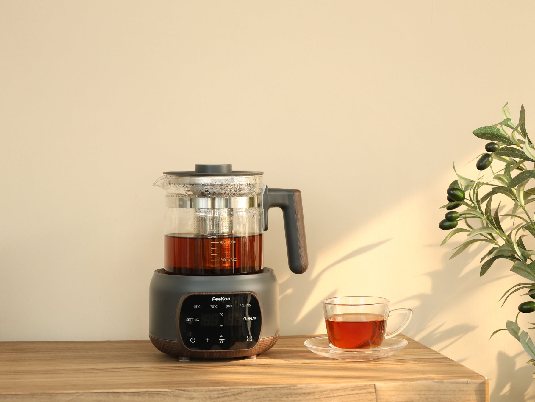 茶こし付きで一台多役!FeeKaa多機能ガラス電気ケトル(FK-BB-05)72時間保温と1℃単位の温度調節で、お茶・コーヒーから調乳まで対応