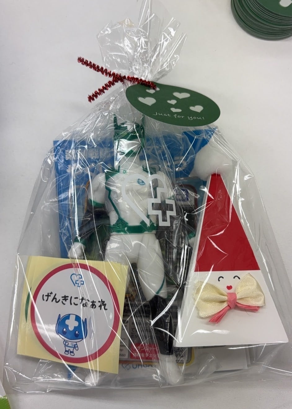 プレゼントの袋には、ドゲンジャーズのヒーロー「ルーキー」のソフビ人形やシール、OnPal手作りのサンタクロースのスタンドなどが入っており、ヒーローから直接プレゼントを受け取った子どもたち笑顔を見せてくれました。最後にはヒーローとの記念撮影タイムも設けられ、ポーズを決めるヒーローを囲んで、院内は温かな喜びに満たされました。