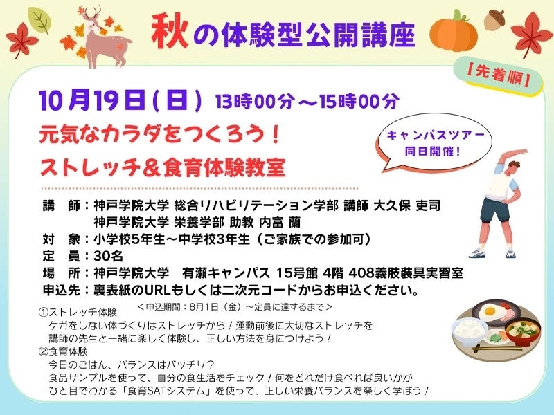 元気なカラダをつくろう! ストレッチ&食育体験教室 神戸学院大学「体験型公開講座」10月19日開催