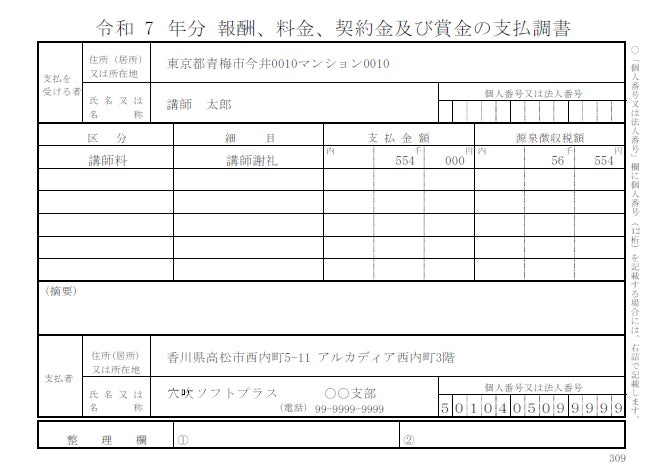 • 多種帳票のワンクリック出力: 支払明細書や領収証に加え、月次の源泉徴収明細書、年次の支払調書まで、必要な帳票を即座に出力できます。• 集計業務の効率化: 年間の支払額や徴収税額を集計した「徴収税納付額一覧表」や「謝金支払い一覧(年次)」を自動作成し、集計作業の負担を軽減します。