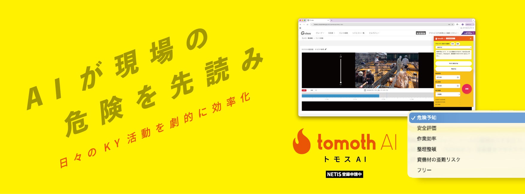 建設現場向けカンタン監視カメラ「G-cam・G-POKE」の開発・製造・レンタルを行う株式会社MIYOSHI(埼玉県三芳町、代表取締役社長:佐藤英吉)は、AI画像解析サービス「カンタンAI tomoth(トモス)」を2026年2月1日より提供開始いたします。