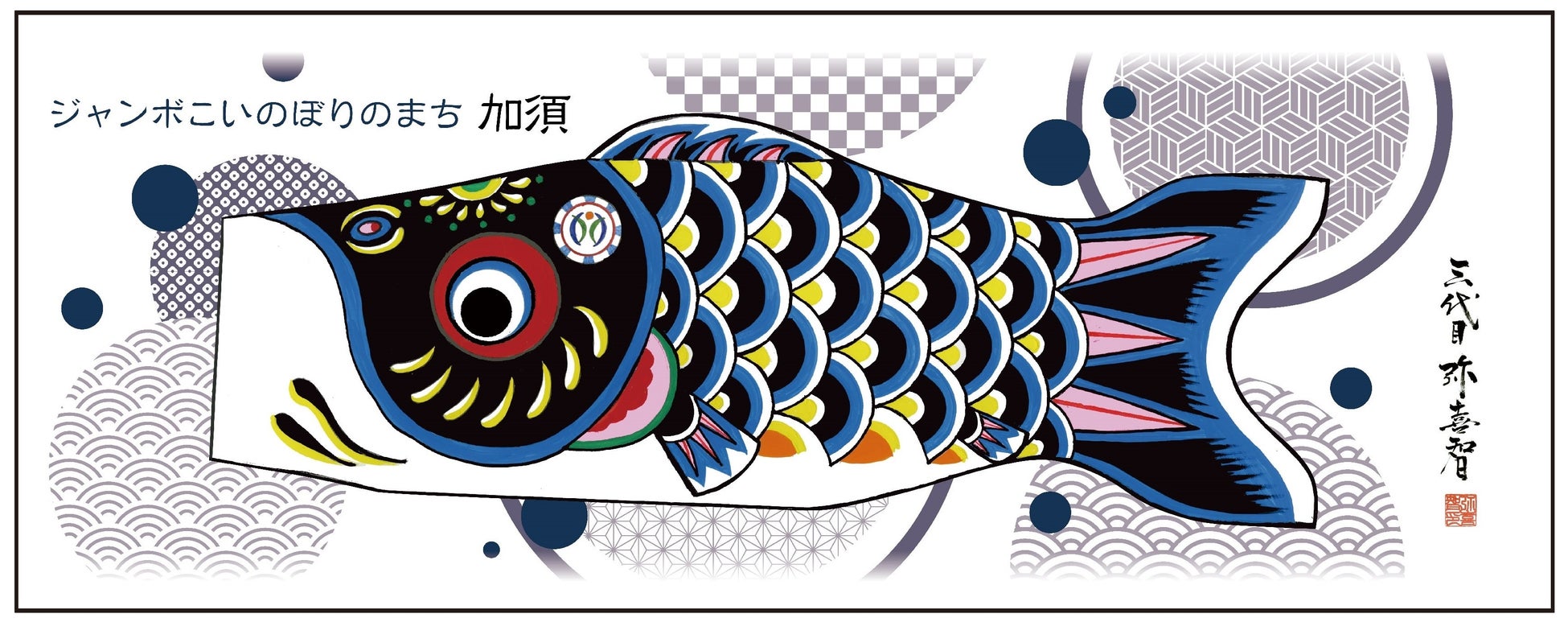 加須市では、県内唯一の手描きこいのぼり製造元として名をはせた橋本弥喜智商店の三代目弥喜智こと、故橋本隆氏が本企画のために特別に描き下ろした「オリジナルこいのぼり手ぬぐい」を販売中です。