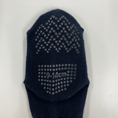 履き口の内側にはサイズ表示とお名前スペースを設けました。お出かけや保育園でも便利にお使いいただけます。さらに、ベビーサイズ(9~14cm、13~16cm)は足裏すべり止め付きで安心です。