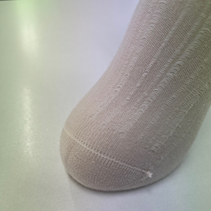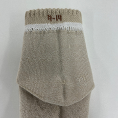 ベビーサイズ(9~14cm、13~16cm)の商品では表糸に綿100%を採用し、やさしい肌触りと高い吸湿性・通気性を実現しました。小さなお子さまのデリケートな肌にも安心です。パッケージには「表糸綿100%」のアイコンを表示しています。