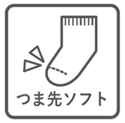 つま先の縫い合わせ部分をフラットに仕上げることで、通常のソックスで感じやすい“ゴロゴロ感”を軽減。敏感なお子さまにも、より快適に履いていただけます。リンキング仕様のソックスのパッケージには「つま先ソフト」のアイコンを表示しています。